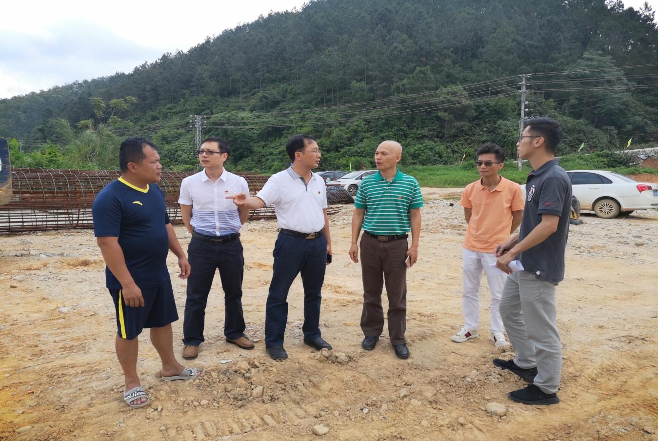 在大沙镇,调研组踏着崎岖的山路来到榄树角桥重建项目现场,视察了工程进展情况。李润明提出要在保证安全、质量的前提加快工程进度,抢在汛期来临之前做好桥梁的桩柱施工。大沙镇政府领导表示将加强对施工方的督促。