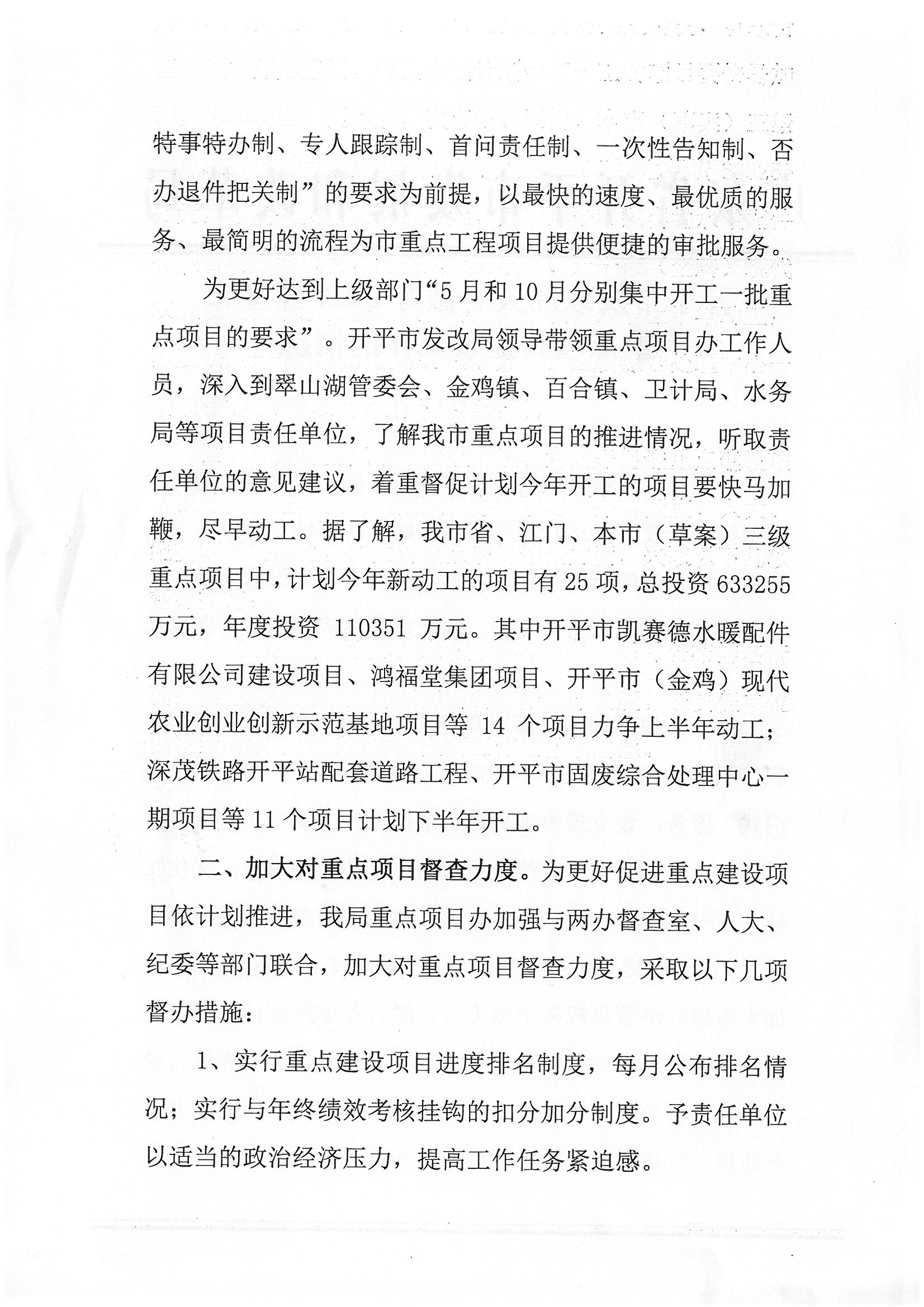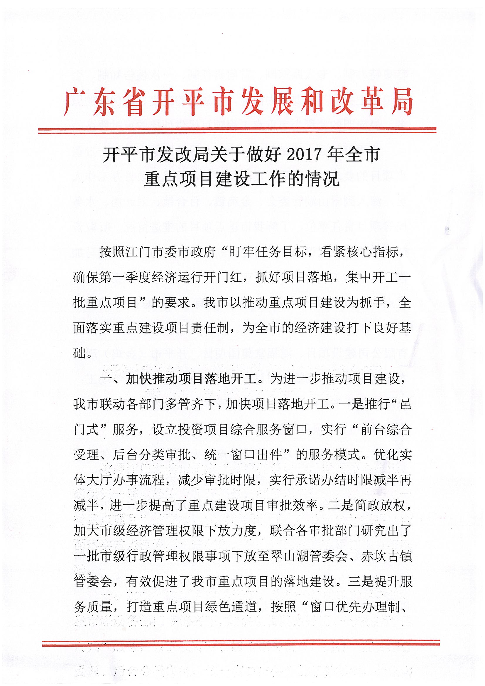 开平市发改局关于做好2017年全市重点项目建设工作的情况