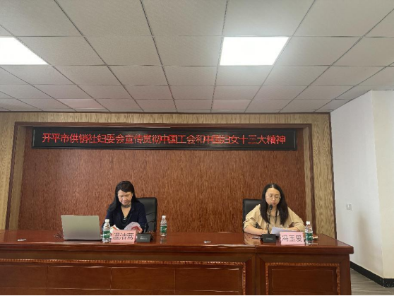 为深入学习宣传贯彻习近平新时代中国特色社会主义思想和中国妇女十三大精神,进一步提高妇女干部职工的法律意识和维权意识,3月26日下午,开平市供销社邀请开平市关心下一代工作委员会常务副主任温洁莺围绕《家庭教育促进法》开展普法宣讲,市社党组成员、副主任、妇委会主任冯玉爱主持,妇委会全体人员参加。 会上,冯玉爱首先传达贯彻党的二十大精神、中国工会十八大精神和中国妇女十三大精神。她指出,要坚持党对妇女工作的领导,要坚持全心全意依靠工人阶级的根本方针和肯定广大妇女是推动党和人民事业发展的重要力量,把学习宣传贯彻习近平总书记重要讲话精神和全国两会精神作为当前和今后一个时期的重要政治任务,在强国建设、民族复兴的新征程上团结奋斗、勇毅前行。 随后,温洁莺围绕我国《家庭教育促进法》出台的重要意义和家庭教育的根本任务、要求、责任、内容、方法等相关内容深入浅出地给大家做了详细的讲解。通过对现实生活中真实案例的剖析,大家对该法有了更深刻的认识,深刻理解了家庭教育对子女的身心健康具有重要作用。 家庭是人生的第一课堂,父母是孩子的第一任教师,家庭教育的质量关乎孩子成长、家庭幸福和社会和谐。此次“侨都巾帼大宣讲”活动, 让市社妇女干部职工充分认识家庭教育的重要意义,树立正确的家庭教育理念,更好地促进未成年人健康成长,让《家庭教育促进法》深入人心。