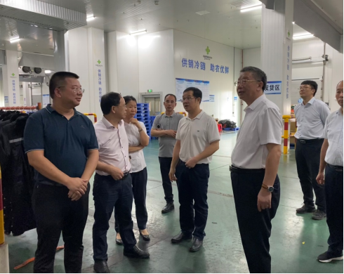 6月26日下午,广州市供销合作总社党组书记、主任吴尚伟带领调研组一行到广东供销公共型农产品冷链物流基础设施骨干网开平项目进行调研工作。江门市供销社党组书记、理事会主任钟国活、开平市供销社党组成员、副主任岑蔚文、天平公司副总经理戚晓鹏陪同此次调研工作。 调研组实地查看园区冷库设施设备、现场作业环境及冷库现有货物储存情况,并详细了解基地概况和冷链物流网络服务体系、仓储运营模式、作业流程、服务功能以及下一步发展规划。 调研组对开平冷链物流项目给予肯定,并表示将借鉴园区的运营经验,加快完善基础设施建设、规范管理和运营,助推冷链物流业加快发展。