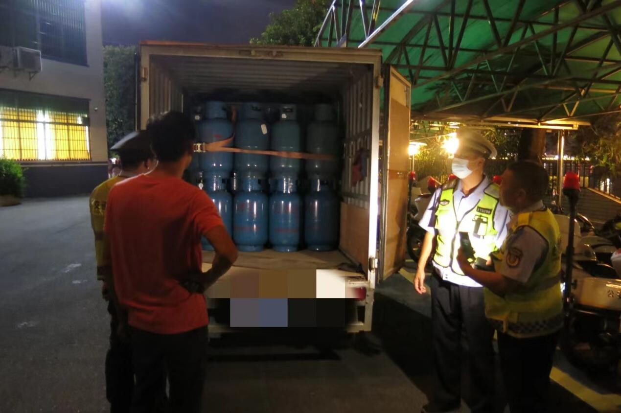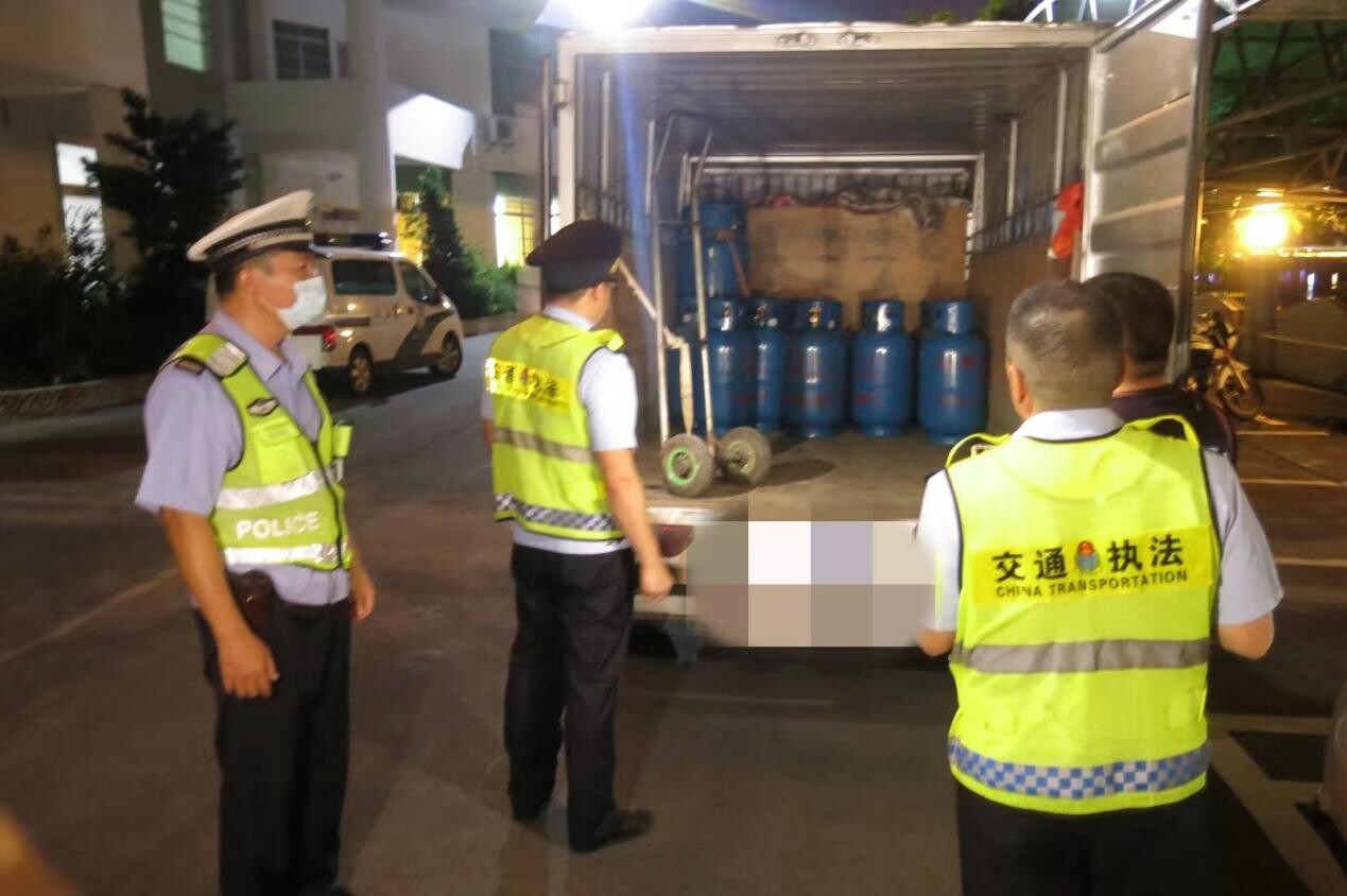 近段时间,市交通运输局执法三大队以道路旅客运输百日整治行动为契机,联合市交警大队积极开展夜间错峰执法,在夜间行动中查获了两辆轻型厢式货车违反国家规定运载液化石油气罐,执法人员立即查扣该车辆并对车上的液化石油气瓶进行安全转移,及时消除两颗不定时的“移动炸弹”,保障群众的生命财产安全。