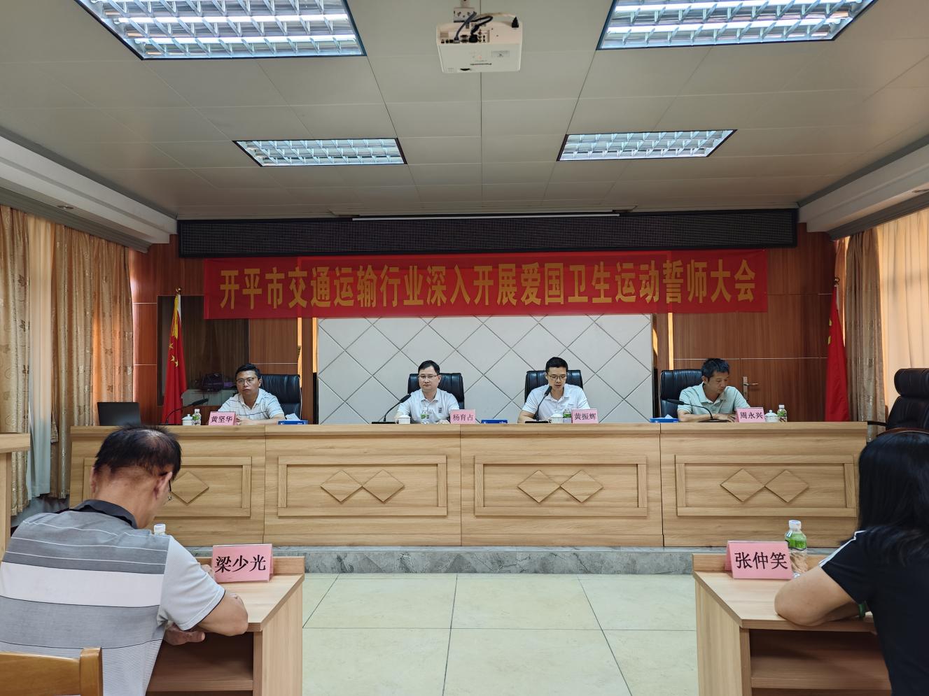 为深入贯彻落实上级关于爱国卫生运动的决策部署,筑牢疫情防控“交通防线”,10月18日上午,开平市交通运输局组织召开全市交通运输行业深入开展爱国卫生运动誓师大会,动员全行业以最坚决的态度、最有力的举措推进以防蚊灭蚊为核心、以清理孳生地为重点,开展为期两周的爱国卫生运动专项行动。市交通运输局全体在家局领导,各股室、执法大队、直属单位以及各客运企业(含网约车)、客运站、城市公交企业、出租车企业、危险货物运输企业、10辆车以上的货运企业、在建交通工程项目、水上运输企业和港口码头企业等代表共105人参加。
