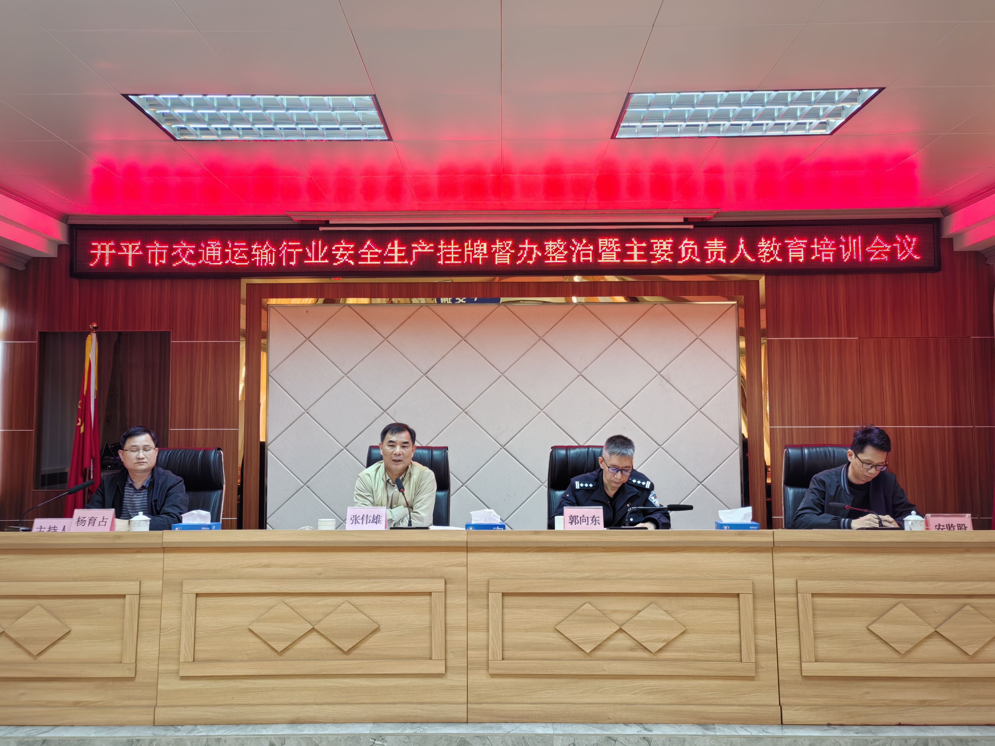 为进一步统筹推进我市交通运输领域安全生产实施挂牌督办整治工作,确保全市交通运输行业安全生产、消防安全工作持续安全稳定,市交通运输局于12月23日组织召开开平市交通运输行业安全生产挂牌督办整治暨主要负责人教育培训会议。市交通运输局张伟雄局长、杨育占副局长,相关股室、直属单位和市公安局交通管理大队以及各客运企业(含网约车)、客运站、城市公交企业、出租车企业、危险货物运输企业、10辆车以上的货运企业、在建交通工程项目、水上运输企业和港口码头企业等有关负责人共52人参加本次会议。