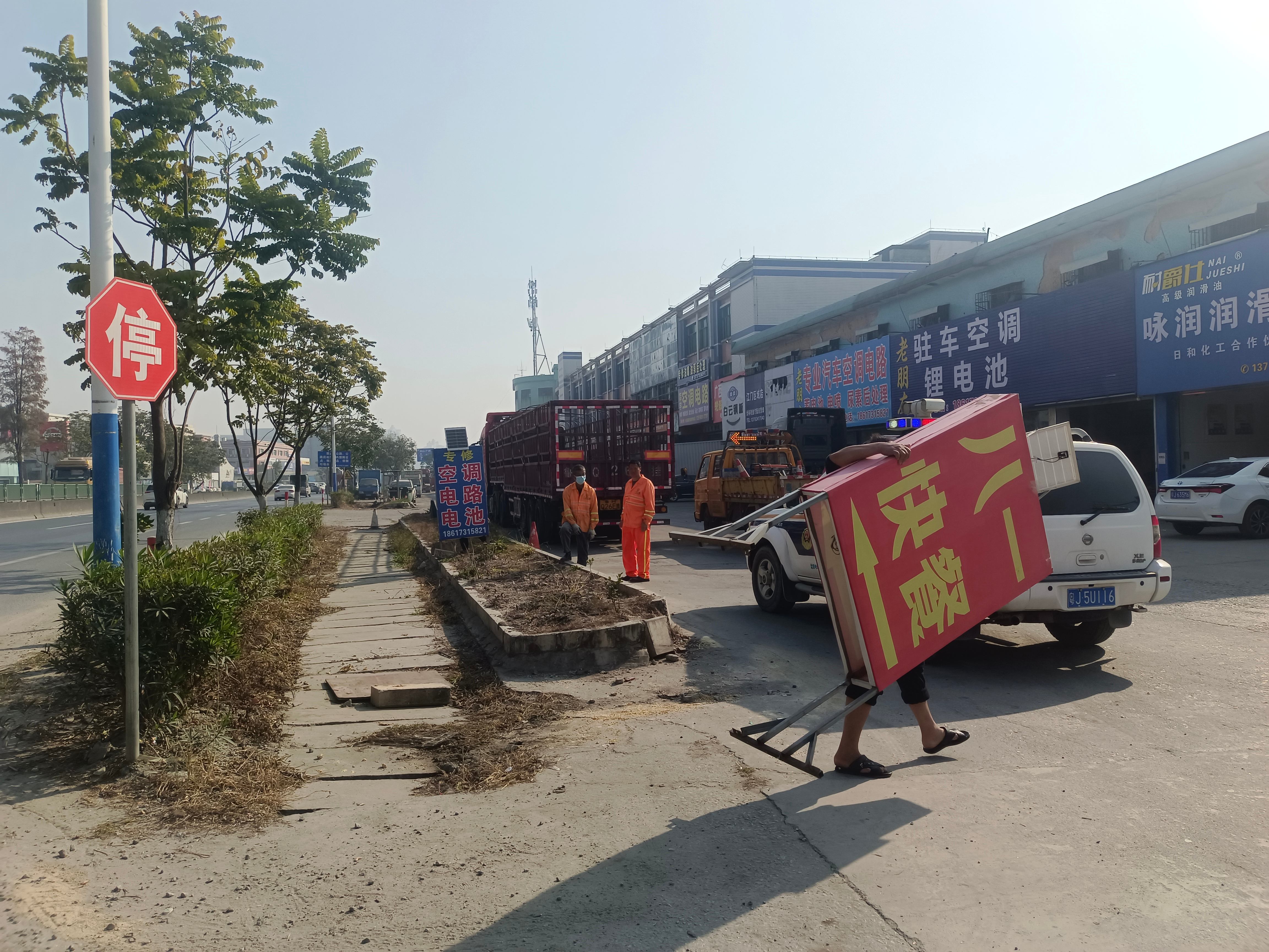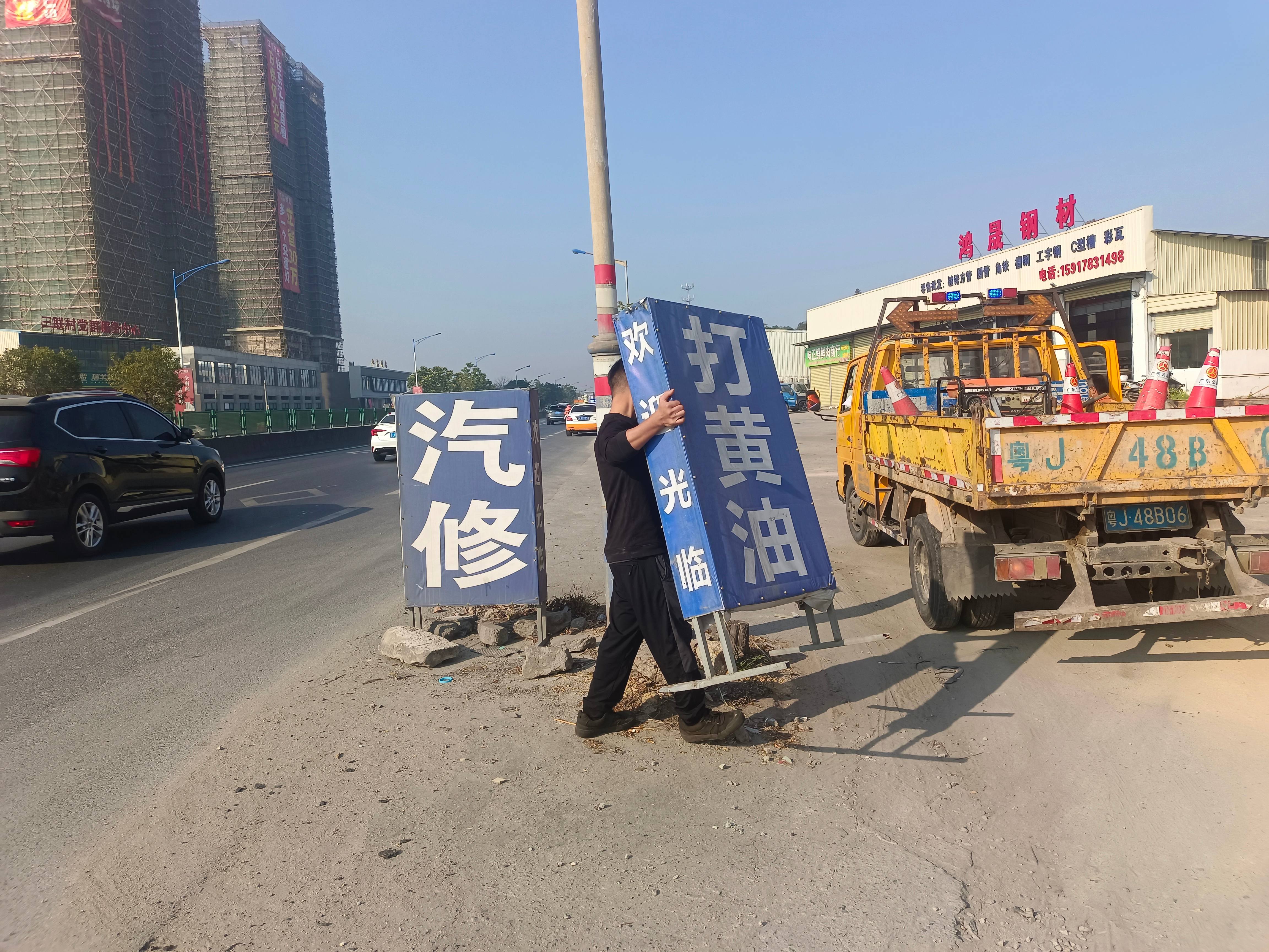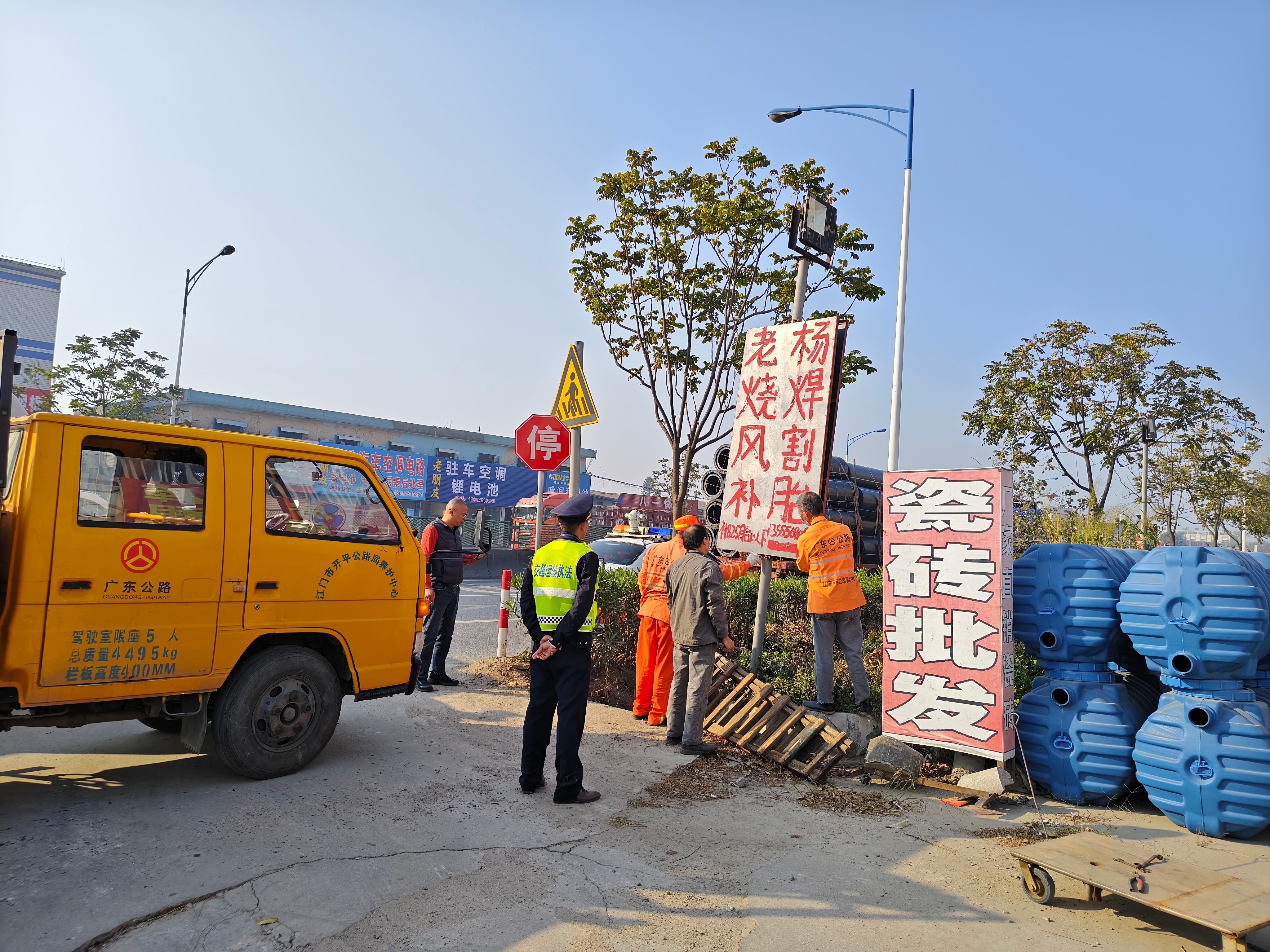 本次路域环境整治主要是对国道G325开平振华至八一路段沿线违规设置的广告牌,特别是存在较大安全隐患的广告牌进行集中清理。根据《中华人民共和国公路法》第五十四条规定,“任何单位和个人未经县级以上地方人民政府交通主管部门批准,不得在公路用地范围内设置公路标志以外的其他标志。”整治过程中,执法人员坚持“说理式执法”,向事主宣传相关法律法规,劝导其自行清除违规设置的广告牌。对无法联系到事主的广告牌,则由养护人员进行安全拆除。本次路域环境集中整治行动共清理广告牌30余块,进一步改善了国道G325公路沿线的路容路貌,有效提升公路通行能力和服务水平。
