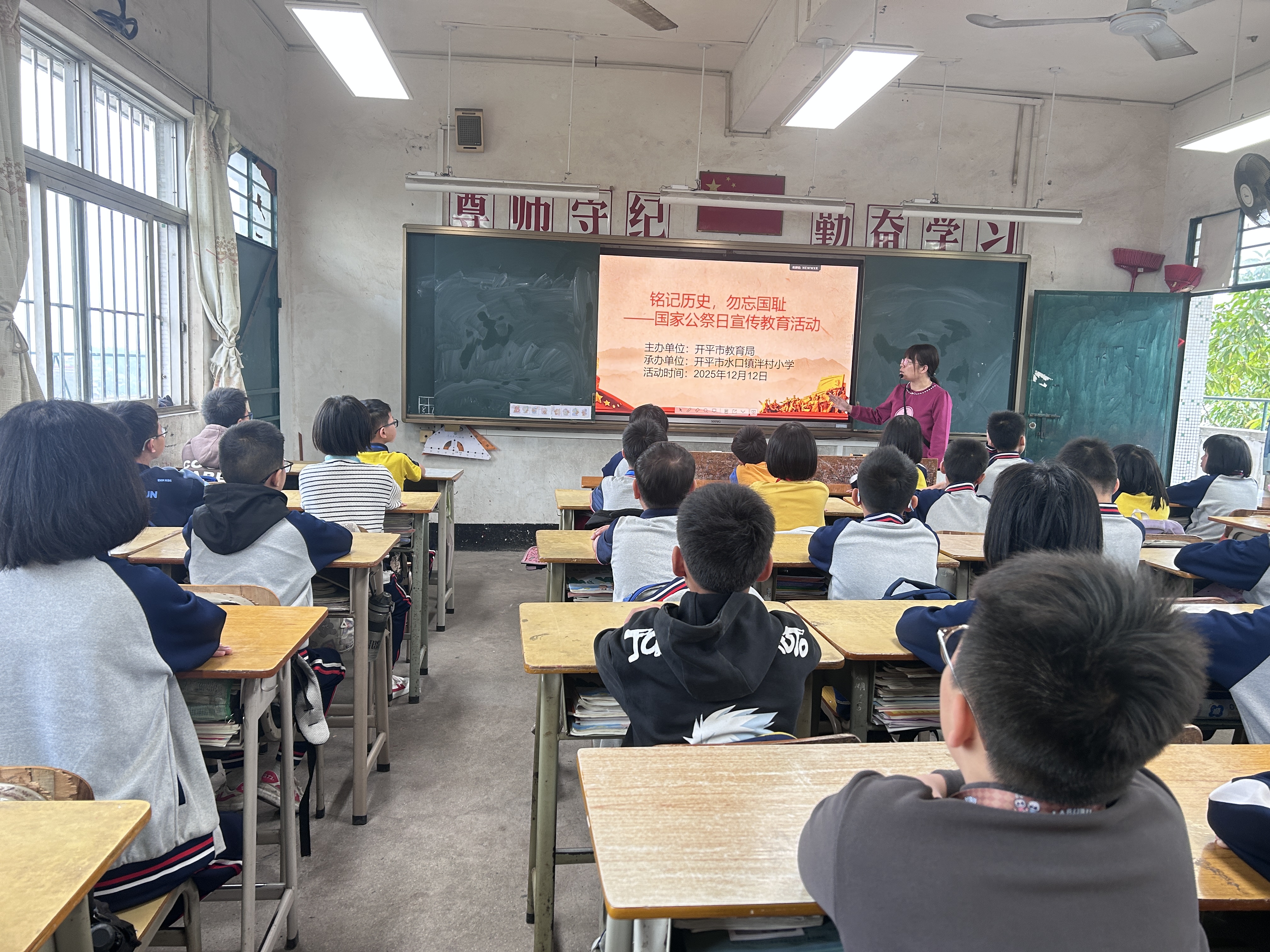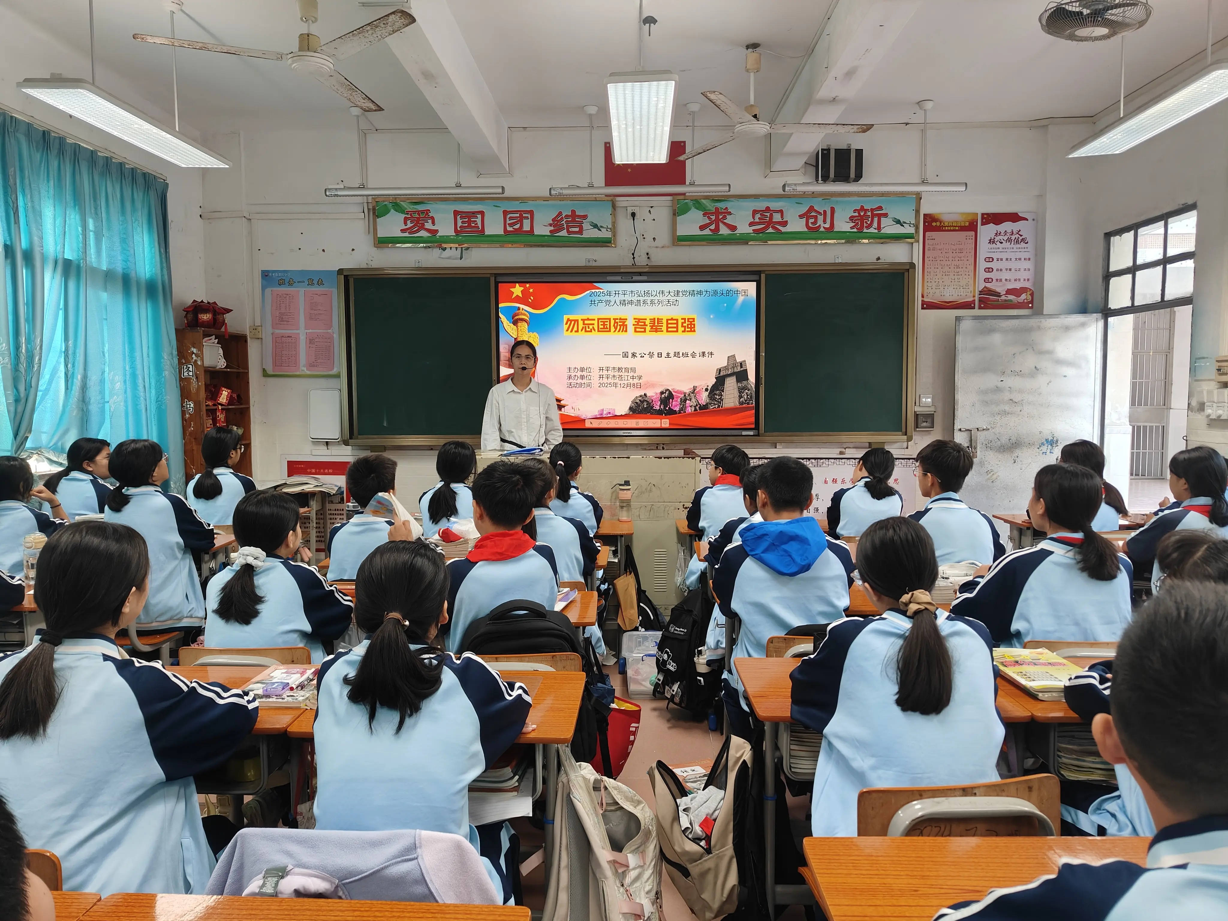 为教育和引导广大青少年铭记历史,激发其爱党爱国之情和民族使命感,由开平市教育局主办的2025年开平市弘扬以伟大建党精神为源头的中国共产党人精神谱系系列活动——国家公祭日主题教育系列活动走进辖内中小学。