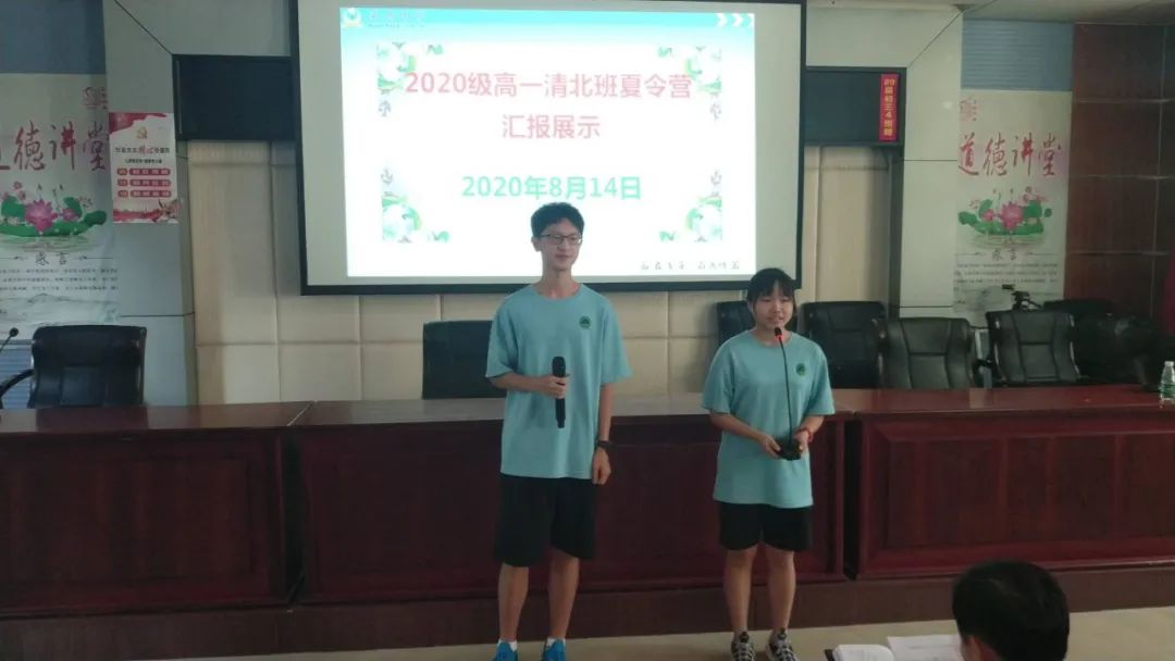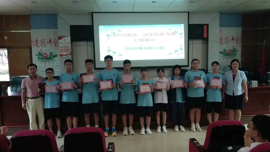 在夏令营活动中,年级评选出10位优秀营员,他们分别是清北1班邓梓宏、谭婧褀、宋彦韬、杨珠萍、何睿晴,清北2班石原坤、李慧桢、严绮楠、梁力航、卢宇航。在交流会上,学校领导为获奖同学颁奖。