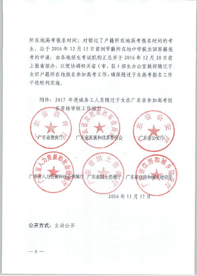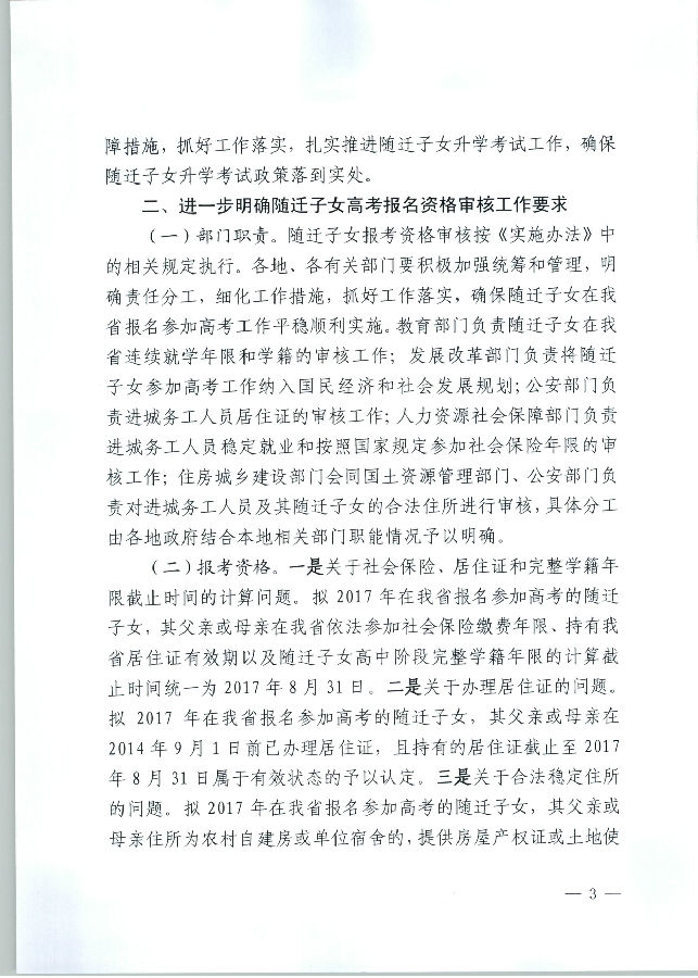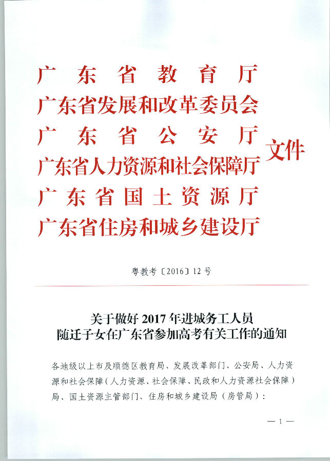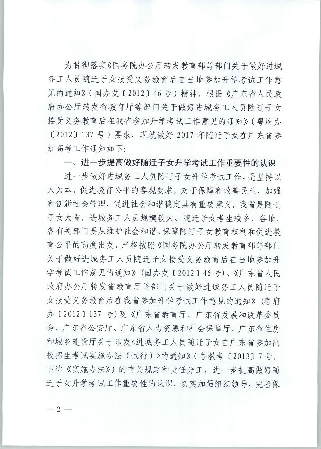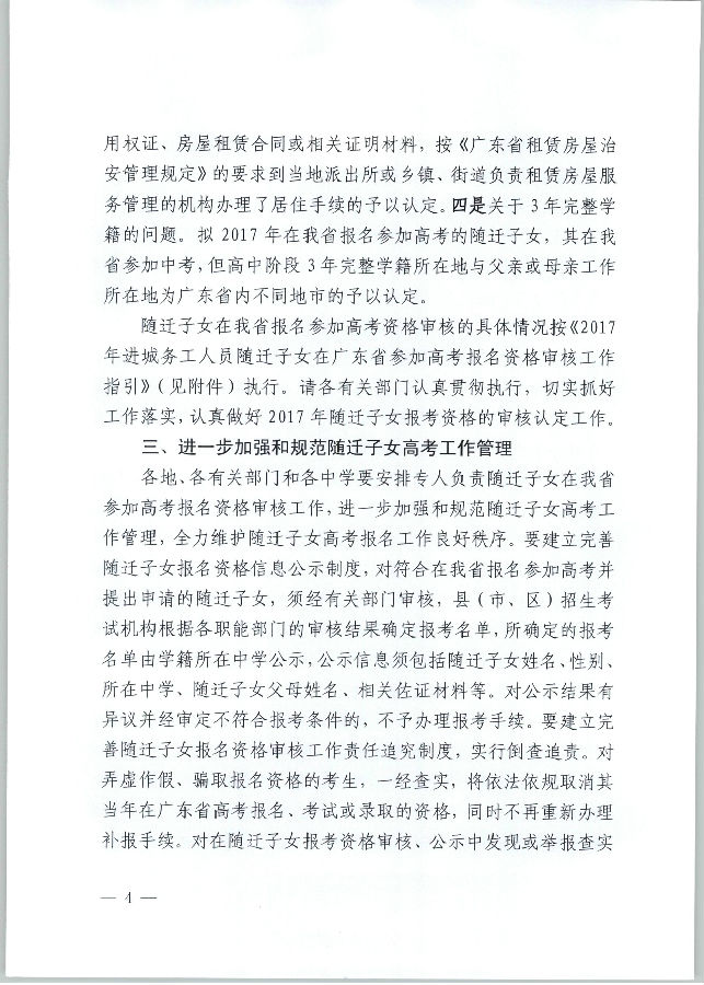 关于做好2017年进城务工人员随迁子女在广东省参加高考有关工作的通知