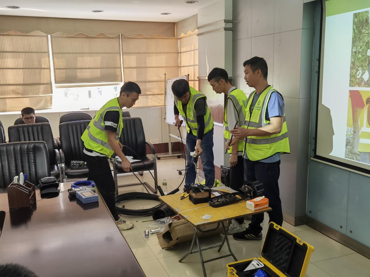 演练模拟场景设置为受强台风影响,我市水库基站受到破坏,造成通信网络事故,同时三防无线电频率受到干扰。演练设置安全着装规范展示、现场熔纤实操演练,并针对应急处置情景全流程中指挥调度、物资保障、安全防范、技术处理等多个环节,模拟现场情景设置问题,以问答对抗的形式还原真实场景,仿真应对各类应急处置细节。