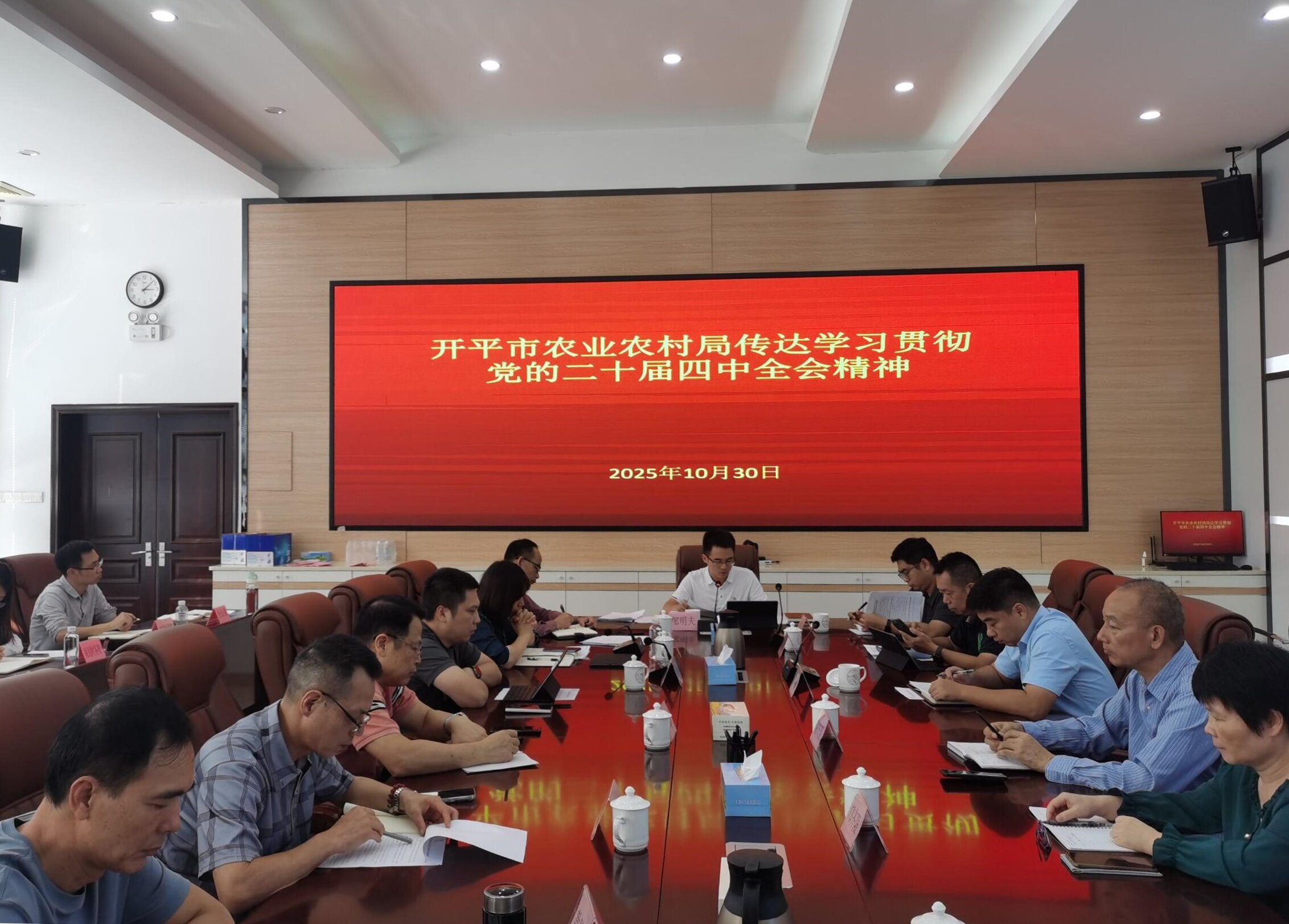 10月30日下午,开平市农业农村局召开党组(扩大)会,专题学习贯彻党的二十届四中全会精神,学习省委、市委常委会会议精神,研究部署学习宣传贯彻落实工作。开平市农业农村局党组书记邹明夫主持会议并讲话。开平市农业农村局党组成员,协管领导,事业单位负责人,各股室负责人参会。 会议指出,党的二十届四中全会是在我国即将胜利完成“十四五”规划主要目标任务、为基本实现社会主义现代化夯实基础、全面发力的关键时期召开的一次具有全局性、历史性意义的重要会议。全会审议通过的《中共中央关于制定国民经济和社会发展第十五个五年规划的建议》,系统谋划了“十五五”时期经济社会发展的指导思想、基本原则、主要目标和重点任务,充分体现了以习近平同志为核心的党中央团结带领全党全国各族人民续写经济快速发展和社会长期稳定两大奇迹新篇章、奋力开创中国式现代化新局面的历史主动,向世界展现了中国式现代化的蓬勃生机与光明前景,必将对党和国家事业发展产生重大而深远的影响。全局上下要深入学习贯彻党的二十届四中全会精神,切实将全会精神转化为推动“三农”工作高质量内涵式发展的强大动力。 会议强调,要把学习贯彻全会精神作为当前和今后一个时期最重大政治任务,锚定粮食安全 “国之大者”,抓好耕地保护,注重藏粮于地、藏粮于技,守牢大湾区农产品供给基地底线。以“百县千镇万村高质量发展工程”为抓手,做强马冈鹅、茶叶、禽蛋、丝苗米等特色产业,以建设整县推进农文旅融合发展试点为契机,持续推进“世遗风韵”乡村振兴示范带建设,加快推动乡村全面振兴。同时抓实“十四五”收官,谋划“十五五”农业蓝图,把全会部署转化为乡村宜居宜业、农民富裕富足的实效,为中国式现代化江门实践贡献“三农”力量。