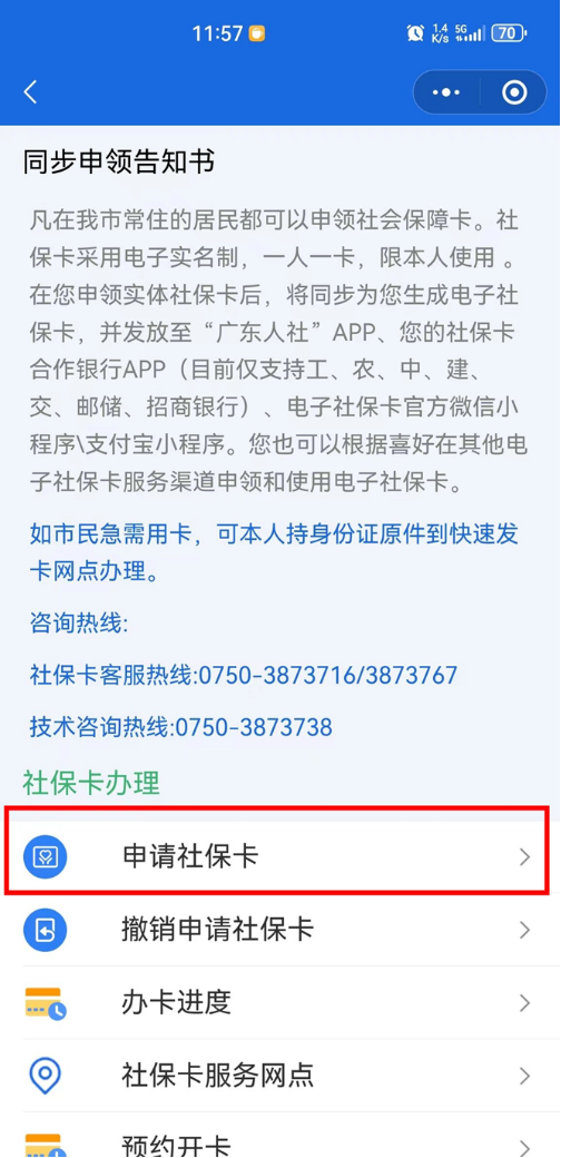 第四步:进入“社会保障卡申领”界面,点击“申请社保卡”选项。