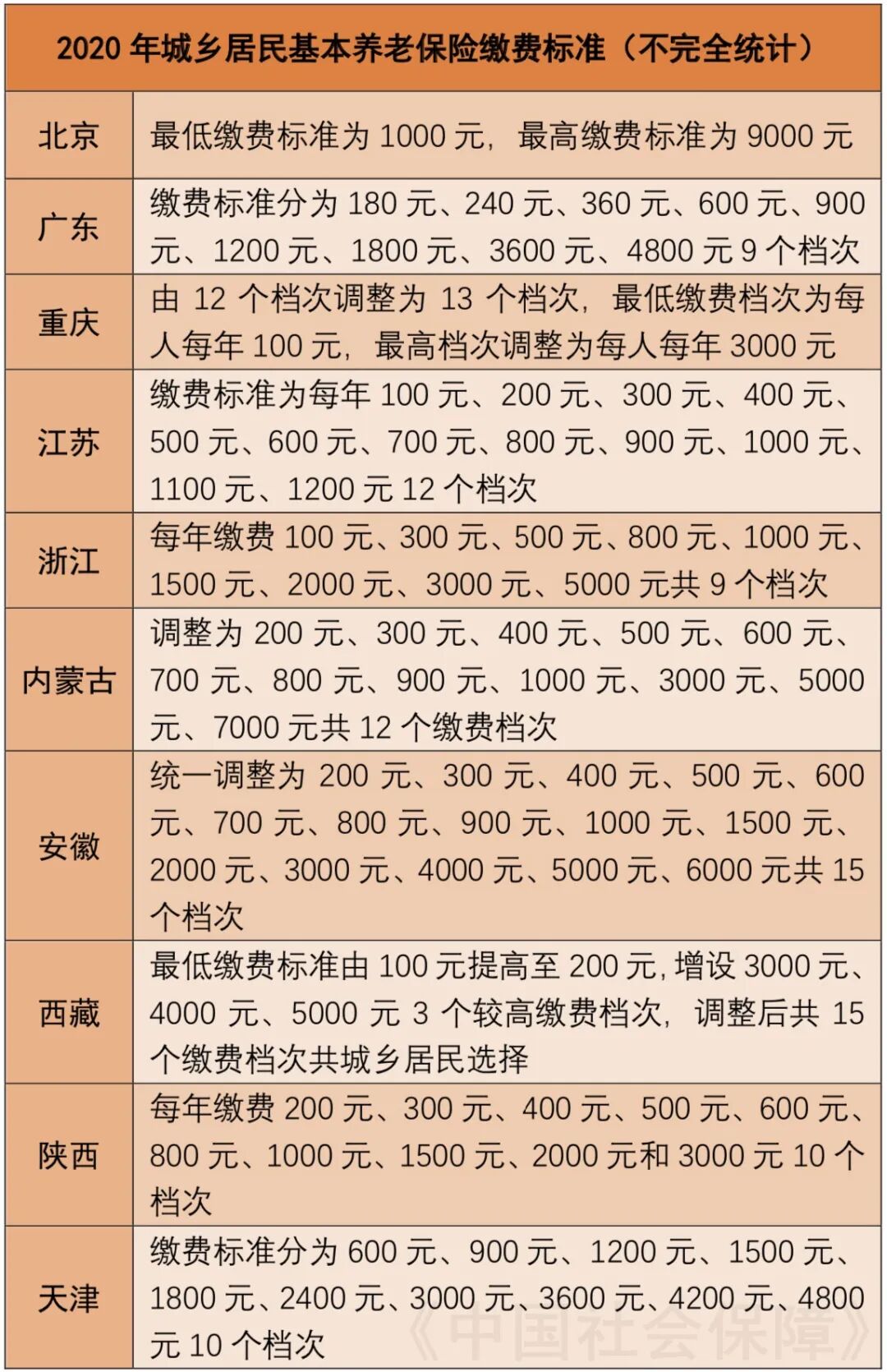 2020年各省市城乡居民基本养老保险缴费标准是如何规定的?