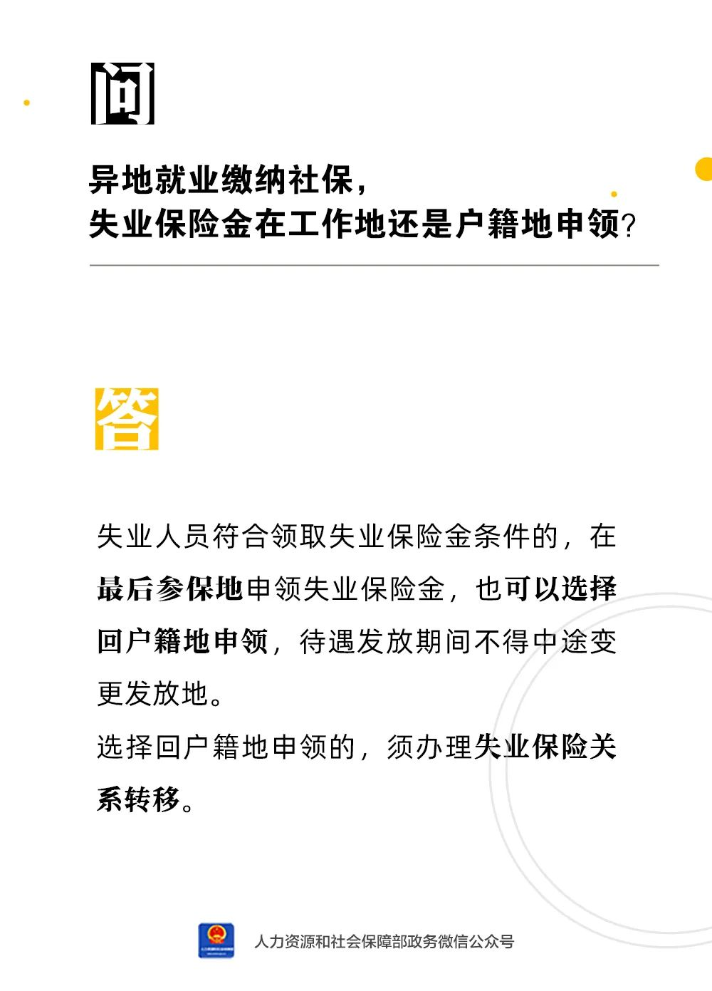 异地就业缴纳社保,失业保险金在工作地还是户籍地申领?