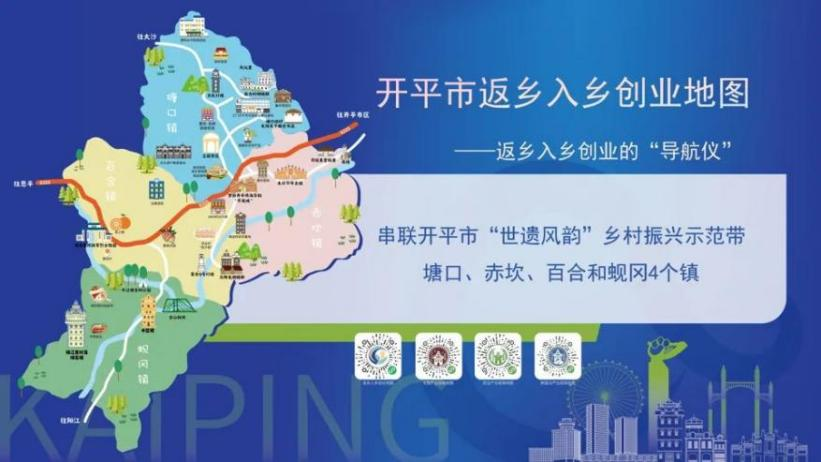 本次创业周是开平推动创业工作的一个生动缩影,也是探索吸引人才返乡入乡创业的重要成果。近年来,开平市扎实开展整县推进农文旅融合发展试点工作,激活5A世遗碉楼景区和赤坎华侨古镇双引擎,吸引一大批有志青年和返乡人才投身乡村,发展民宿、文创、书店、咖啡店等新兴业态,为乡村注入新活力,助力实施“百县千镇万村高质量发展工程”。开平打造返乡入乡创业大礼包政策保障,涵盖一次性创业资助补贴、创业租金补贴、创业担保贷款、农业品牌培育奖励、民宿产业和文创产品方面扶持等政策,配套提供共享工位、人才公寓、人才饭堂等资源,全面优化创业就业环境,助力返乡创业者发展。此外,通过发挥“开创π”的平台优势,推行“总部+项目”模式,累计吸引70个创业团队进驻,辐射带动开平市相关产业就业人数超2万人,真正实现“以点带面、全域开花”。