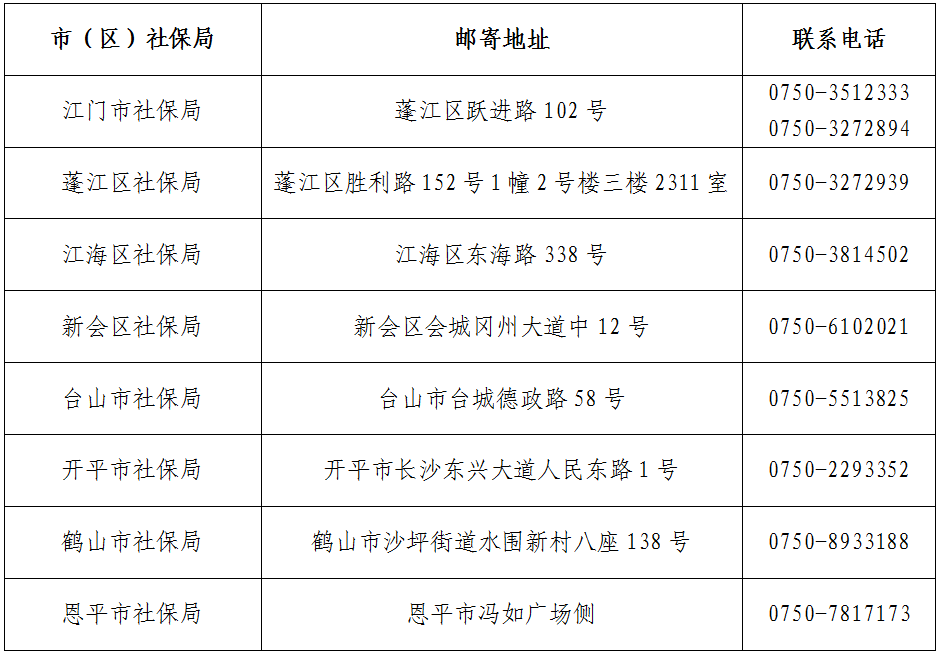 在疫情防控期间,参保人如需办理申请退休、待遇领取资格认证、申领死亡待遇等业务,还可通过致电当地社保经办机构进行预约登记,待疫情结束后按流程提交相应材料。另外,参保人还可通过邮寄等非接触式途径办理。具体邮寄地址和联系电话如下表: