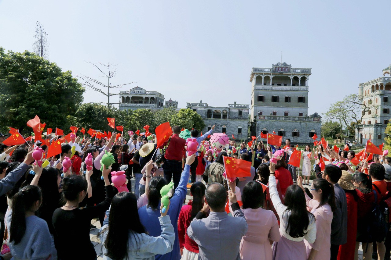 这次活动主题为“相约碉楼 共唱祖国”。通过当前风靡祖国大地的快闪形式,广泛宣传改革开放以来我市经济社会发展取得的辉煌成就,充分展示我市开放、创新的城市精神和“宜居宜游宜业”的城市面貌,引导和激励全市人民坚定不移地走改革开放的道路,以更加奋发有为、锐意进取的精神状态,全力打造具有国际影响力的华侨华人文化交流合作重大平台、粤港澳大湾区具有独特竞争力城市,建设“四个走在全国前列”示范县市的光荣使命!