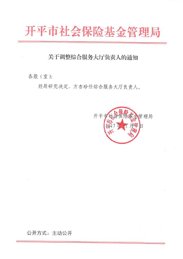 关于调整综合服务大厅负责人的通知