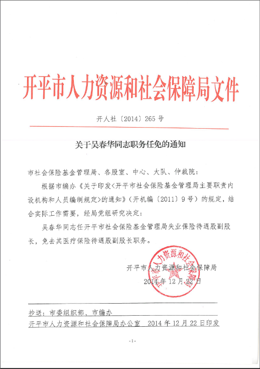 关于吴春华同志职务任免的通知