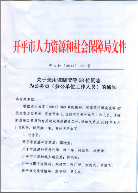 关于录用谭晓莹等58位同志为公务员(参公单位工作人员)的通知