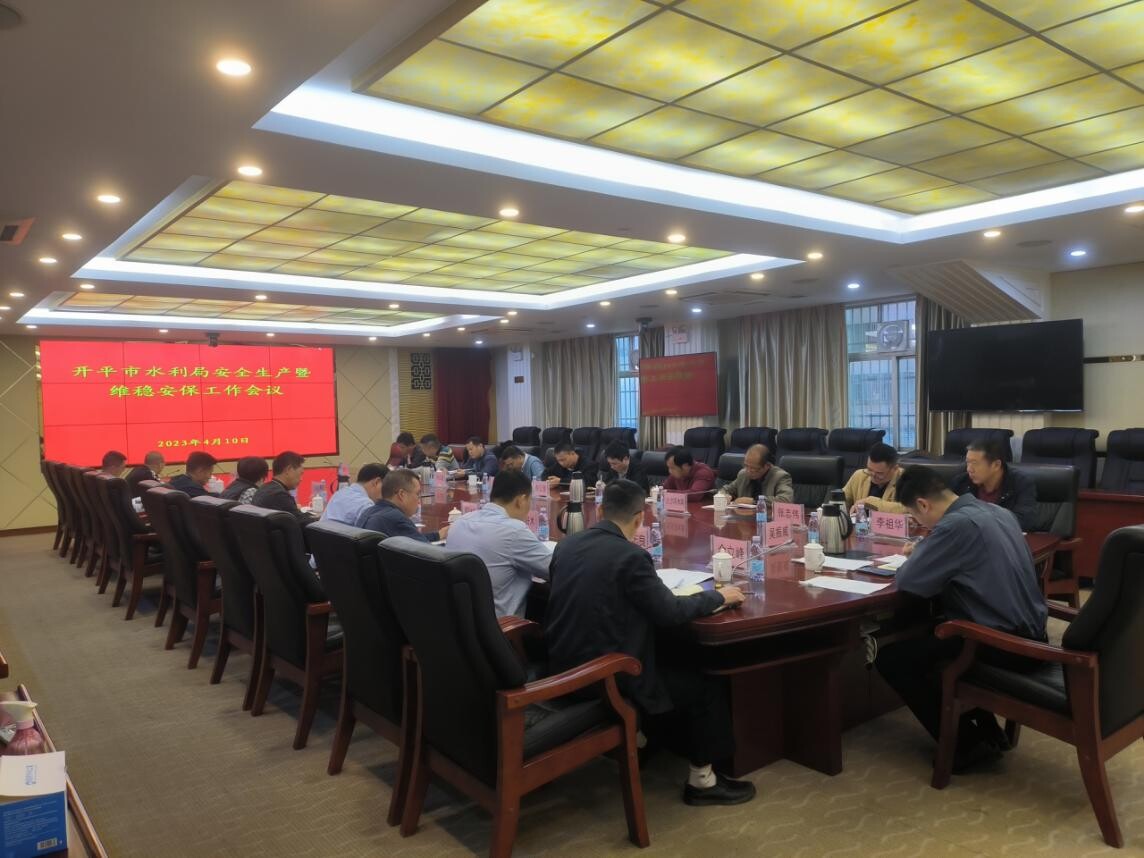 4月10日,市水利局在局三楼会商室召开开平市水利系统安全生产暨安保维稳工作会议,局大院所有工作人员、各下属单位主要负责人参加会议。