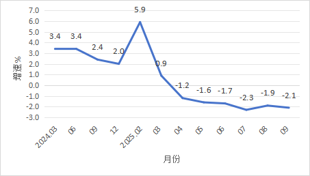 2024年3月以来开平市规模以上工业增加值增速 四、投资 前三季度,全市固定资产完成投资同比下降29.6%。分经济类型看,国有投资下降8.5%;港澳台和外商投资增长14.0%;民间投资下降31.0%。 五、消费市场 前三季度,我市完成社会消费品零售总额131.59亿元,与去年同期持平。 图2