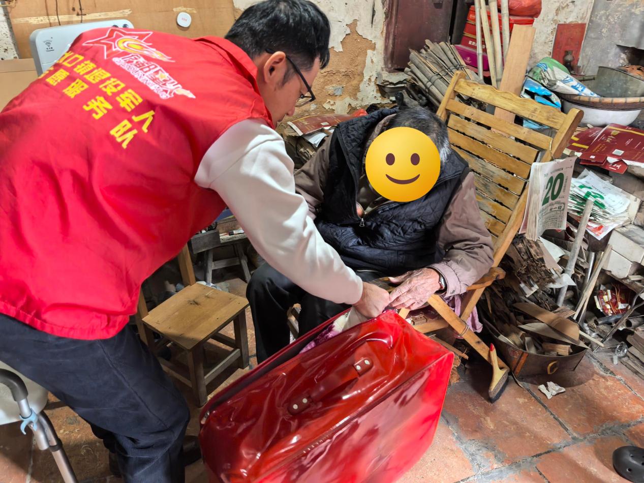 水口镇八旬老兵余伯系一名特困人员,独居农村老宅且患有高血压等基础疾病。此前工作人员走访时,余伯反映陈旧被褥用了十几年,夜里冷得直打哆嗦,膝盖疼得睡不着。得悉情况后,慰问组第一时间携带崭新的棉被上门,不仅为其铺好床铺,还仔细检查了取暖设备用电安全,叮嘱其注意防滑防寒。摸着蓬松柔软的棉被,余伯感动致谢:“这被子又轻又暖和,你们还这么关心我,心里热乎乎的!”