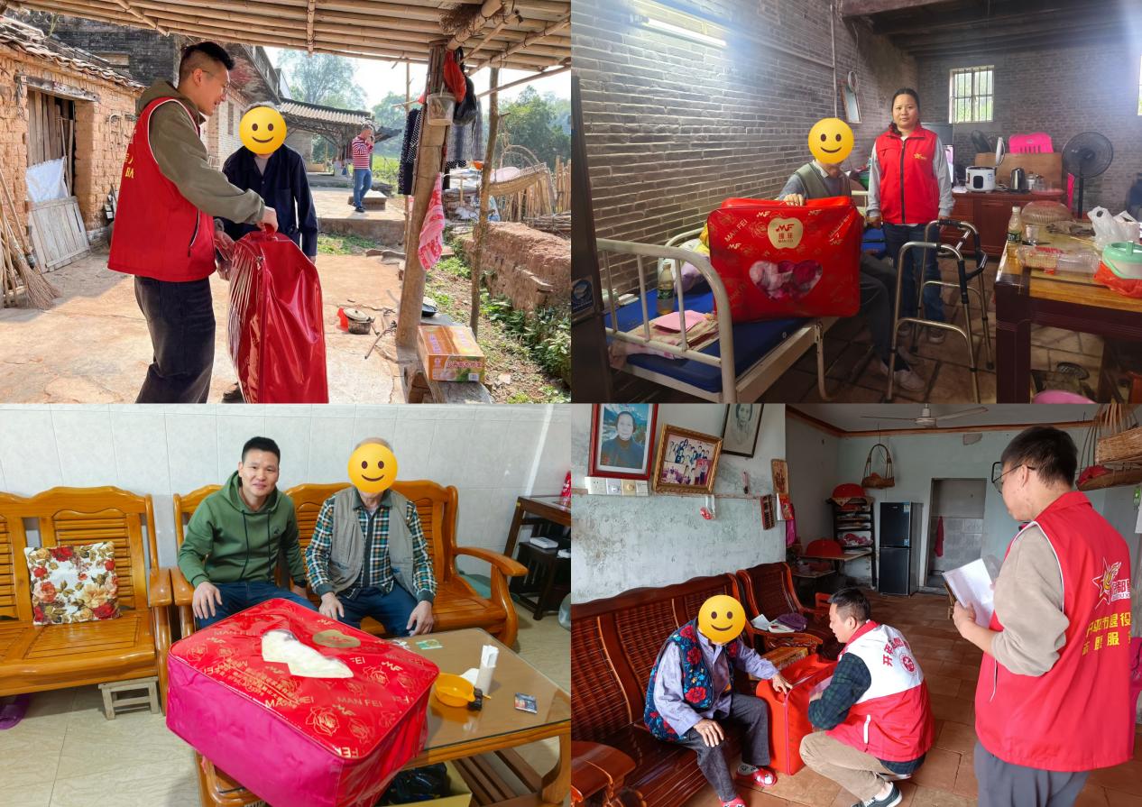 凛冬至,气温降。近日,开平市退役军人事务系统联合侨都星火开平市退役军人志愿服务队启动“棉被暖兵心”慰问活动,为辖区困难退役军人送去御寒棉被,以细致关怀温暖老兵身心。