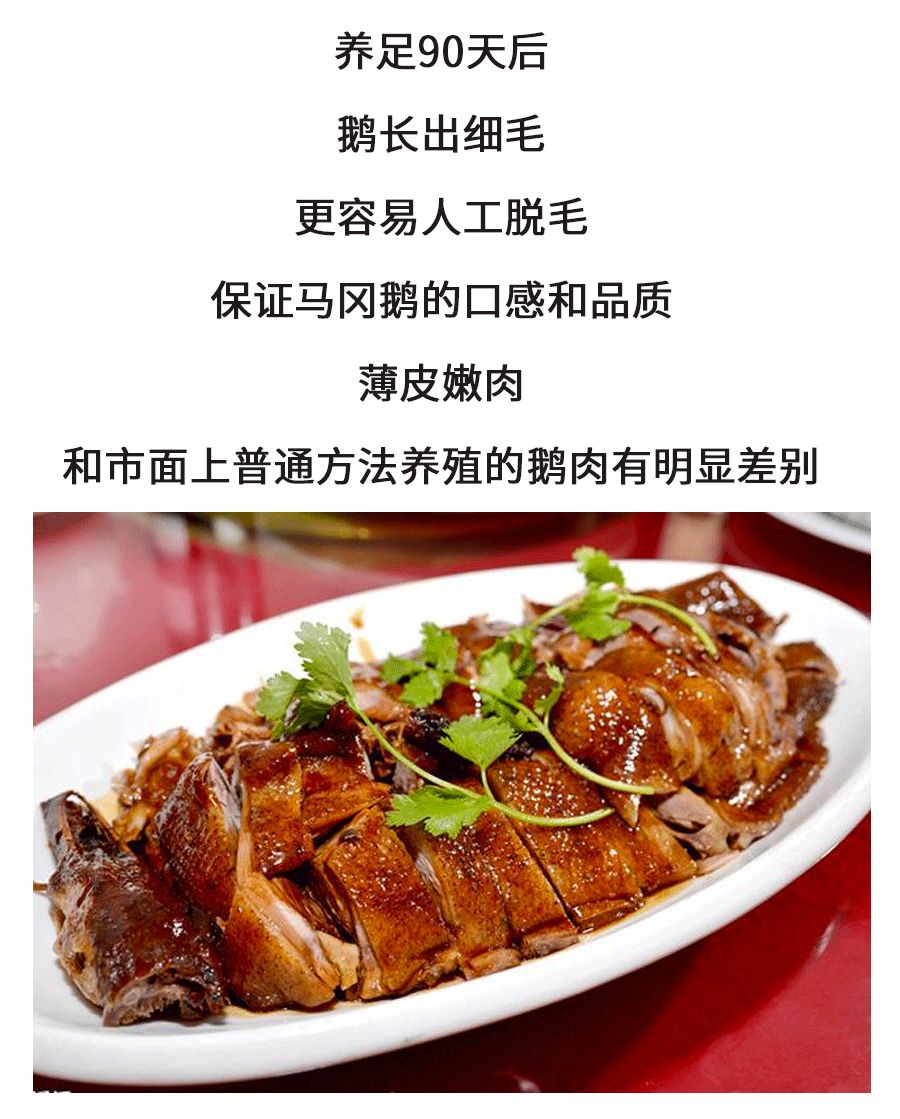 马冈鹅体形硕大,头大颈粗,胸宽脚高,头、嘴、脚皆乌黑,毛色亮丽,肉质鲜嫩、味道清香。因此深受各地客商的青睐,不少外地客商长期订货,马冈鹅成为了马冈镇地方经济的品牌之一,被列入广东省优良家禽品种,是广东省四大名鹅之一,并且“马冈鹅”牌肉鹅已获得了国家无公害农产品认证。梁奕德的第七代传人梁兆滚告诉调查组,马冈母鹅在拔翼毛之后40天至60天便可产蛋,到90天便可孵出鹅仔,一年可产4造。1997年10月,马冈镇经济发展公司与江门市农林开发公司共同投资成立了马冈鹅发展有限公司,把自然孵化改为机械自动孵化,并反季节培育肉鹅供应市场,把马冈鹅的发展推上了一个新的台阶。马冈鹅肉质纤维比较靓,吃起来口感嫩滑,鹅肉的味道也比较浓,其肝较大,约100克重,马冈鹅早就名声远扬,成为一个响当当的品牌。用它做的菜色,如传统烧鹅、狗仔鹅、芋仔炊鹅、卤水鹅、鹅乸汤、豉油鹅、甜酸鹅、柠檬鹅、话梅鹅、白斩鹅等,深受食家的欢迎。马冈鹅体型适中,头、嘴、脚皆为乌黑色,羽毛灰黑色,头大颈粗,胸宽,脚高,皮薄,肉纹纤细,肉质好,脂肪适中。1、白切鹅:用盐水煮熟,切碎上盘,浇豉油而食,保持鲜味。2、豉油鹅:加适量豉油煮熟,让豉油渗透鹅体,香滑可口3、狗仔鹅:用煮狗肉的形式焖熟,加入香粉,别有风味。4、酸甜鹅:以醋、糖、豉油同等配份煮鹅,香甜中带酸味,风味独特。5、豉油王鹅肠 :烧沙锅爆香小料,落红葱头,依次将豆芽菜、鹅肠分别调好味,放锅中炒约10分钟左右即可,上席时撒上少许葱花。口感爽脆甘香,肥而不腻。