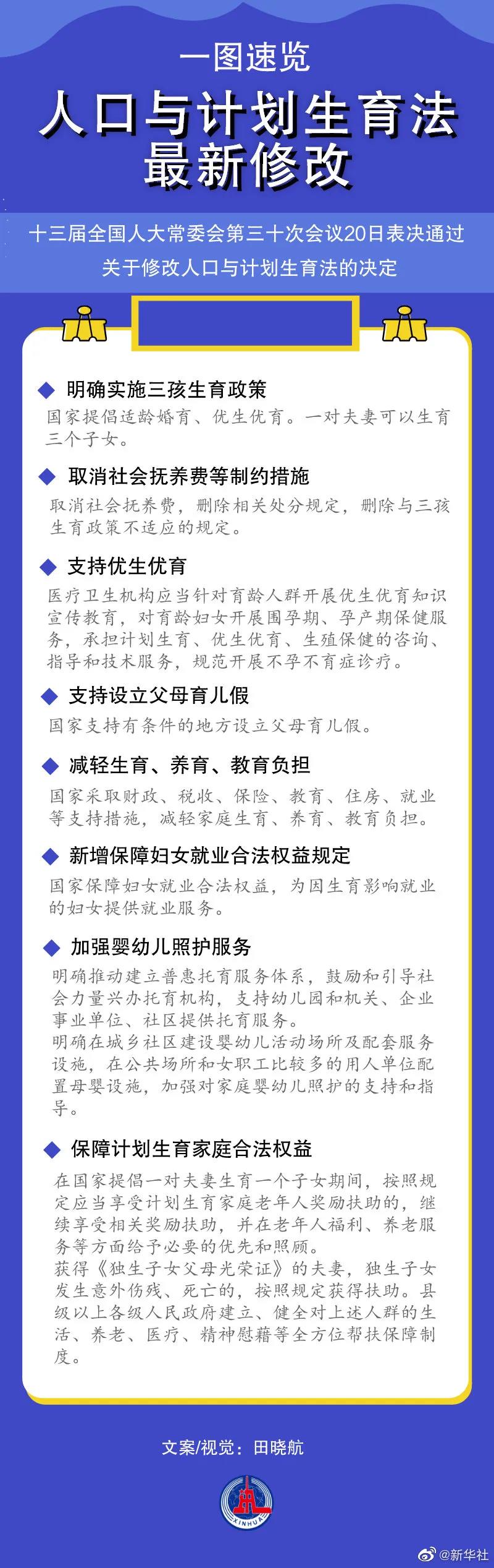 来源:全国人民代表大会常务委员会关于修改《中华人民共和国人口与计划生育法》的决定