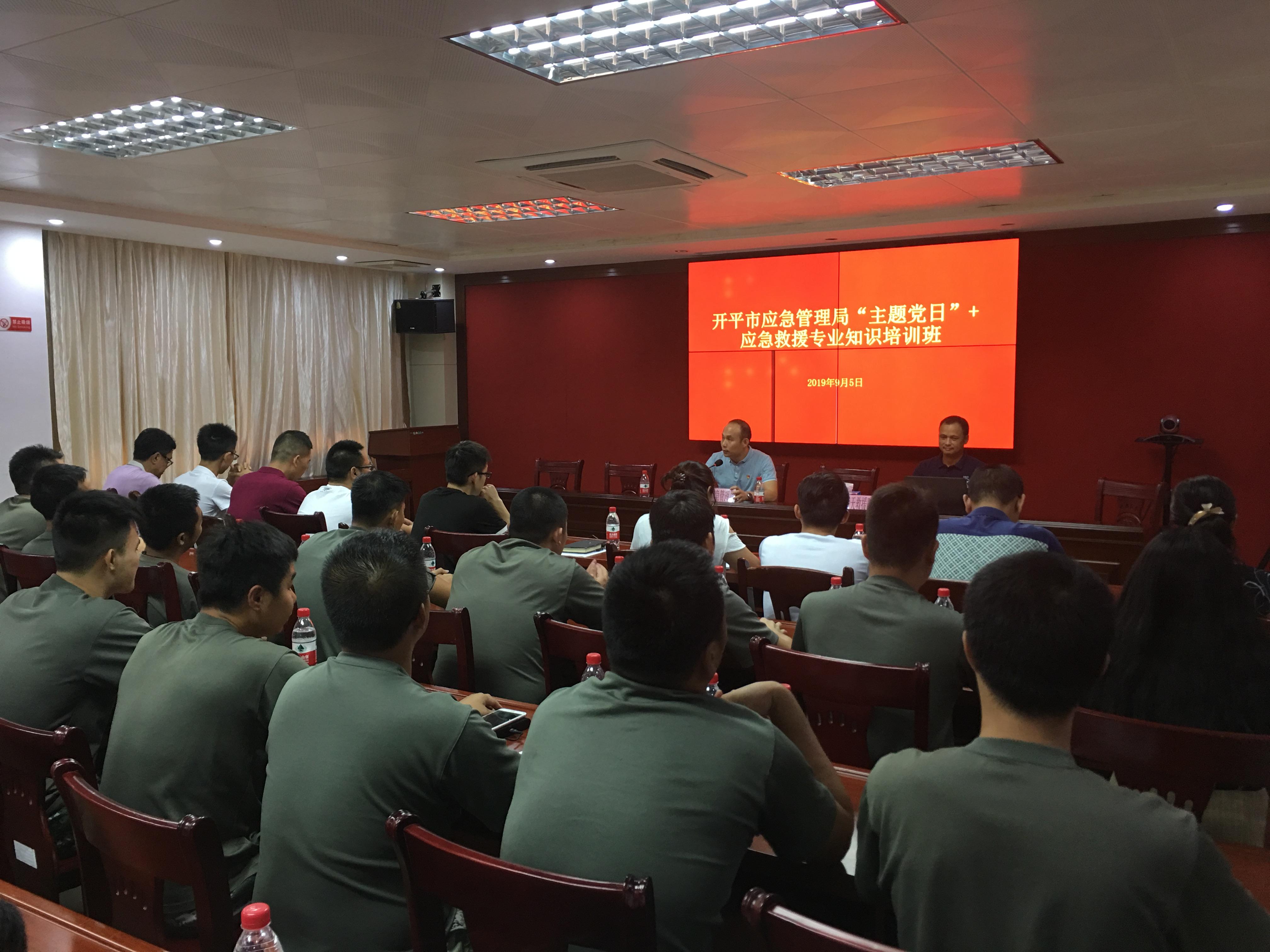 为进一步加强我市的应急管理工作,全面贯彻落实《开平市市镇村企四级综合性应急救援队伍建设实施方案》,不断提升全局应急管理系统干部队伍素质和应急救援能力,9月5日下午,开平市应急管理局以党建为引领,开展“主题党日”+应急救援专业知识培训班。培训班由市应急管理局总工程师张灿思主持,邀请开平市蓝天救援队张木权队长进行授课。市应急管理局党员干部和应急大队全体队员参加了培训班。 会议首先由张灿思总工程师传达了近期省和江门关于党建和应急管理重点工作的会议精神,并表示面对大应急、全灾种,局机关全体党员干部和应急大队全体队员必须要充分认识开展党建活动的重大意义,珍惜和运用好每一次学习机会,不断增强自身的应急救援知识,全面提升应急救援能力,建立一支拉得出、上得去、打得赢的综合性应急救援队伍。 接着由开平市蓝天救援队张木权队长及队员,对参会人员进行了现场授课培训。培训内容结合了我市面临的灾害种类实际,从洪涝和地震地质灾害救援要点、救生衣的种类介绍和使用技巧、山地遇险的急救措施、简易担架的制作方法、野外求救和救援要点等多方面进行了详细讲解,并现场指导市应急大队队员进行了简易担架制作的实操。 通过开展应急救援专业知识培训班,让局全体党员干部从思想上认识到党建引领的重要性,进一步提升学习应急救援知识的积极性,增强自然灾害和突发事件应急处置能力,最大限度地保障人民群众生命财产安全。