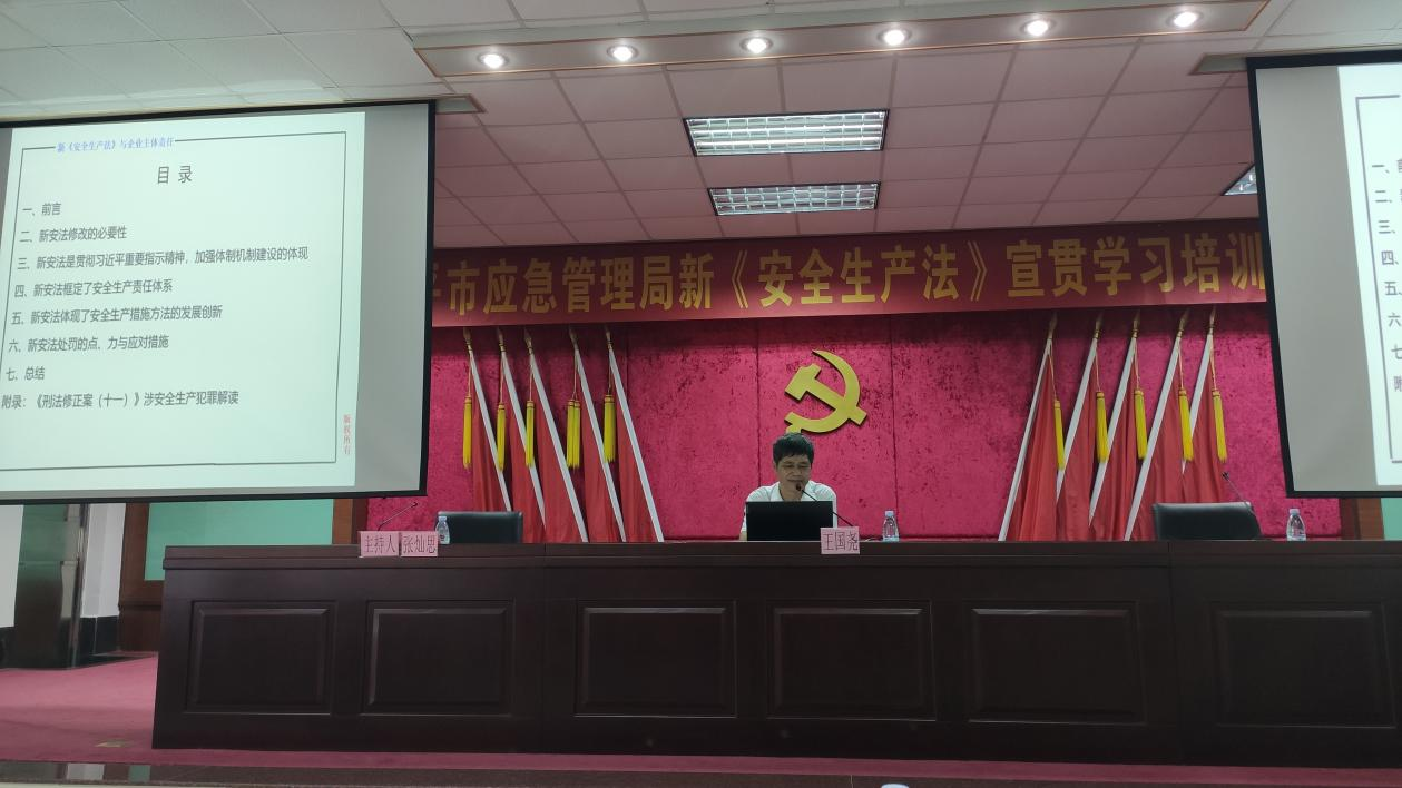 为做好新修订《安全生产法》的学习宣传和贯彻执行工作,2021年8月24日,市安委办、市应急管理局邀请专家在市委党校举办新《安全生产法》宣贯学习培训班。市安委办主任、市应急管理局党委书记、局长梁国兵同志出席培训班并作动员讲话,市应急管理局党委委员、副局长张灿思同志主持会议,市应急管理局全体安全监管人员,各镇(街)、管委会应急办负责同志及重点行业领域企业主要负责人、安全管理人员约200人参加培训。 在动员讲话上,梁国兵同志强调:一是参会人员要充分把握这次培训机会,认真学习领悟新《安全生产法》重点内容,增强安全生产的责任心和积极性;二是要自觉守法用法,坚决遏制生产安全事故的发生,不断提高安全生产管理水平;三是各镇(街)、管委会应急办负责同志要加强新《安全生产法》宣贯工作,结合实际创新形式内容,积极开展有针对性、实效性的学习宣贯活动,推动我市安全生产形势持续向好。 培训课上,专家重点从新《安全生产法》的几大亮点切入,主要是修正背景及意义、安全生产责任体系、安全生产措施方法的发展创新和处罚力度及应对方法等方面进行了新旧对比和解读,梳理了应急管理部门监管责任、属地监管责任和企业主体责任,并通过播放生产安全事故警示教育视频案例、展示事故现场图片等方式,对事故发生原因、暴露问题及整改措施等方面进行了深入剖析,强化了企业负责人安全生产意识。 会议开始前,市应急管理局会务负责同志严把防疫关,对每位参会人员进行了体温检测、粤康码查阅及酒精消毒,确保会议各项疫情防控防范措施落实落细。会议结束后,会务负责同志向每家参会企业派发新修订的《安全生产法》,指导督促企业做好内部宣贯工作,确保新《安全生产法》有效实施。