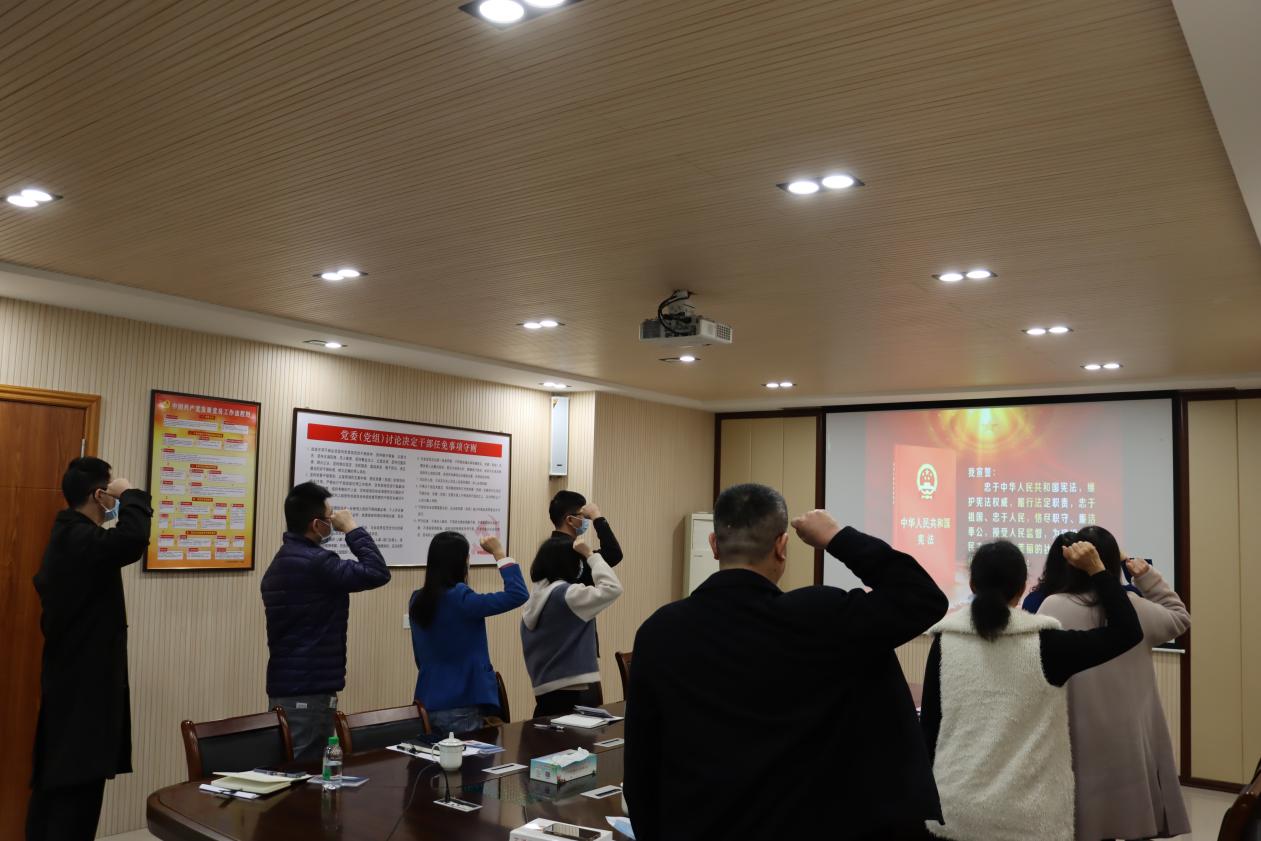 我局党组把宪法学习纳入理论学习中心组学习重要内容,带头专题学习宪法核心要义、基本原则和实践要求,发挥 “头雁效应”;组织机关干部在线观看案件庭审,直观了解宪法及相关法律法规的适用过程,增强运用法治思维和法治方式解决问题、推动工作的能力。