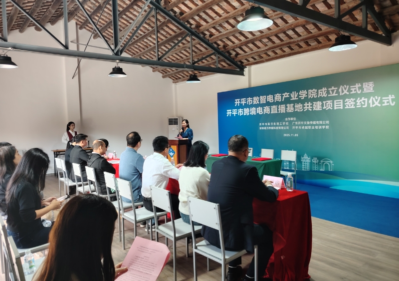 11月5日上午,开平市数智电商产业学院成立仪式暨开平市跨境电商直播基地共建项目签约仪式在三埠街道荻海埠举行,标志着开平市在深化产教融合、抢抓数字经济与跨境电商发展方面迈出关键一步,为开平市产业升级与经济高质量发展注入新动能 仪式上,开平市吴汉良理工学校、开平市城市建设发展集团有限公司下属企业广东开平文旅传媒有限公司、开平市卓越职业培训学校三方共同签订战略合作协议书,并为“开平市数智电商产业学院”揭牌。产业学院将深度融合“数据”与“智能”,通过校企协同育人、项目化实战教学等模式,搭建从学习到就业、创业的快速通道,广泛开展社会培训,致力打造粤西地区电商人才培养高地。 开平市吴汉良理工学校校长张国兰介绍:“这个项目对校企双方而言是双赢之举,该基地是真实项目运营的场所,学生们能以学徒身份在这里接触实际项目,这对提升他们的技能水平、增进对岗位的认识都有着显著的促进作用。此外,基地不仅开展学生的培训工作,还面向社会技能人才提供培训服务,主要致力于服务本地的中小企业。如果有中小企业在这方面存在人才需求,可直接与基地对接,学校能够向企业直接输送技能人才。” 同时,广东开平文旅传媒有限公司与深圳易万传媒科技有限公司签订《开平市跨境电商直播基地共建项目合作协议书》,共同启动“开平市跨境电商直播基地共建项目”,双方将携手推动本地跨境电商发展。该项目以开平市荻海埠片区物业为载体,依托开平产业资源、侨乡优势与文旅基础,打造集人才培训、直播带货、企业服务与品牌孵化于一体的区域性跨境电商示范平台。项目计划每年孵化不少于100名本土电商直播人才,助力开平特色产品通过直播渠道拓展至海内外市场,进一步推动地方产业转型与经济发展。 开平市数智电商产业学院的成立及跨境电商直播基地共建项目的签约,有效整合了教育资源与产业需求,是开平市响应国家数字经济发展战略、推动产业转型升级的重要举措,也将为促进就业创业、赋能区域经济高质量发展提供持续动力。