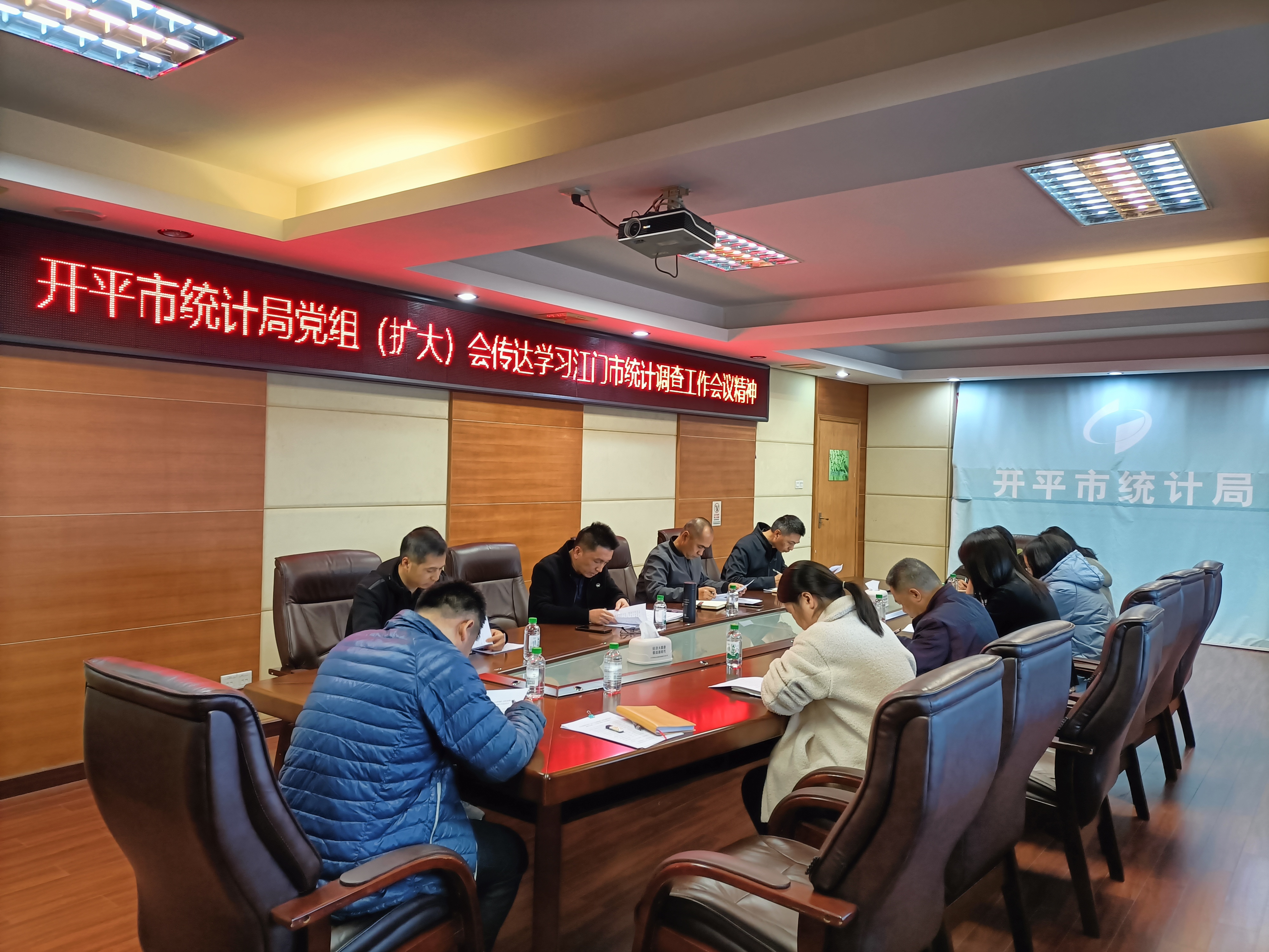 会议要求,全局上下要深刻学习领会江门市统计调查工作会议精神,秉承“统计不分家,局队一家亲”的好传统,牢固树立统计“一盘棋”的大局意识,切实增强做好统计调查工作的责任感和使命感,对标对表要求,找准着力点、结合点、突破点,以更加务实的作风全力以赴做好各项工作,奋力谱写开平统计调查新篇章,力争取得“三新”成效。一是升规纳统工作取得新突破,进一步做强全市经济总量。要持续优化完善升规纳统工作机制,主动强化与部门协同配合、信息共享,充分运用五经普工作成果,推动达规企业及时入统。密切关注新业态新领域,下沉一线做深做实调查研究,进一步加强农文旅和市场商贸消费纳统研究,推动旅游、批发市场、城市综合体等业态的经营主体入库纳统。二是统计“双基”建设取得新成果,进一步做实统计数据质量。强化统计队伍管理,积极探索加强基层统计力量的新途径,选优配强镇(街)统计员。指导企业加快电子统计台账建设,规范统计工作流程,筑牢统计数据质量根基。强化统计业务精准培训,想方设法提升基层统计人员业务技能。扎实做好新修改《统计法》宣传教育,常规化开展统计执法检查,加强统计监督与其他各类监督贯通协调,严肃查处各类统计违法行为,树牢“两防”(防注水、防少漏)防线。三是统计服务水平取得新提升,进一步做优统计工作质效。立足主责主业,发挥统计数据优势,加强统计监测预警工作,“精准把脉”经济运行情况,更好服务市委市政府科学决策。聚焦高质量发展,围绕建设现代化产业体系、“百千万工程”、乡村振兴、保障和改善民生等重点领域,组织开展专题分析研究,充分发挥参谋助手作用。抓好亿元以下项目抽样试点工作,全面推动固定资产投资改革落实。扎实推进重大统计普查调查,高质量完成全国1%人口抽样调查工作,全力抓好四农普各项筹备工作和开展好五经普数据发布应用等工作,切实将普查成果转化为推动经济社会高质量发展的强劲动力。