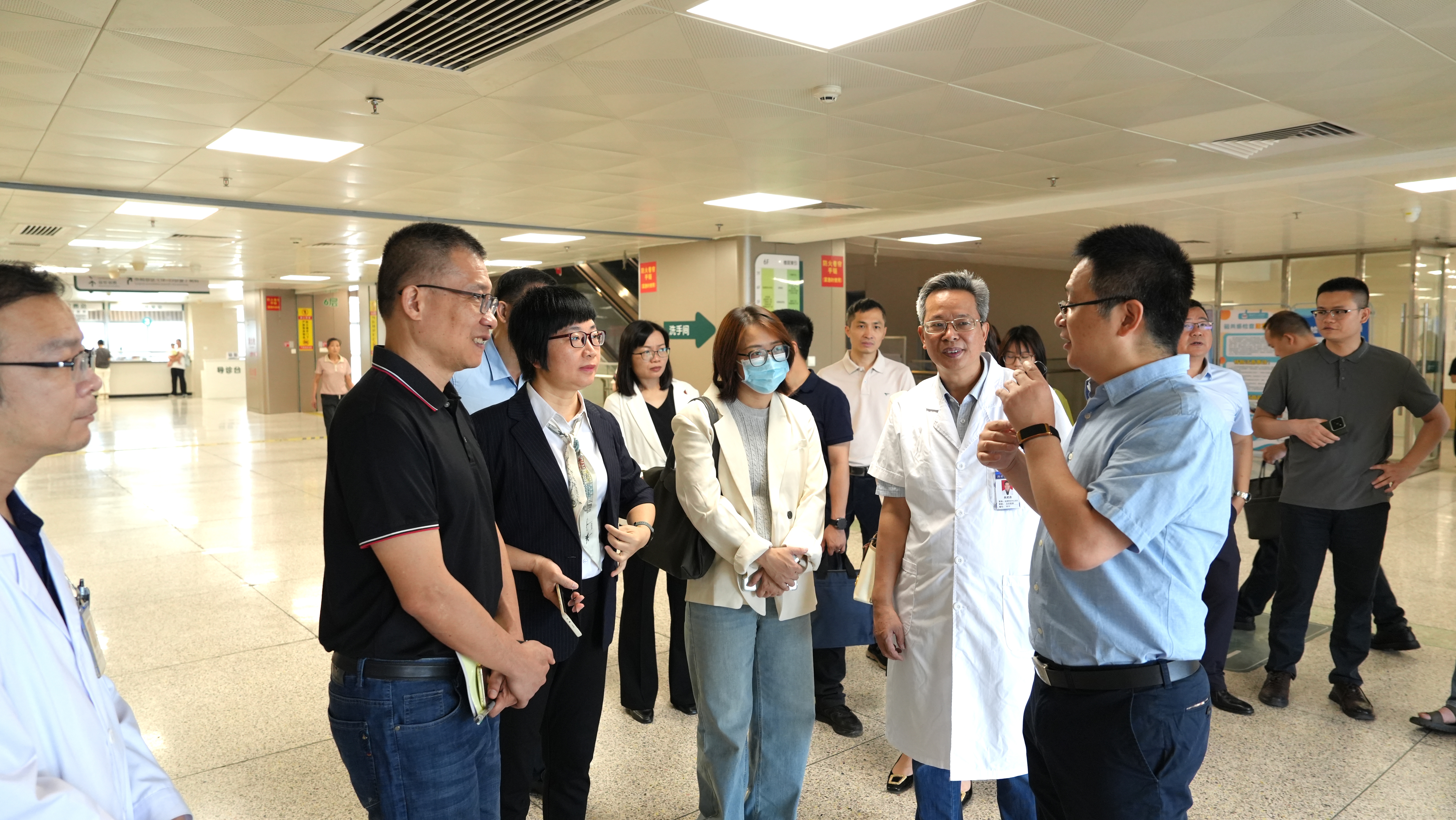 调研组一行在揭阳市人民医院党委副书记、院长刘庆华亲自带队下实地参观了揭阳市人民医院的门诊部、儿科、全科医学科、生殖医学科以及肾脏病中心等重点科室,深入了解各科室的运营管理、医疗服务模式以及先进医疗技术应用情况。