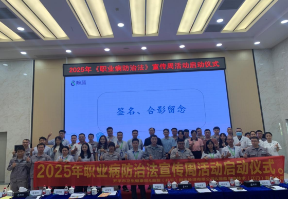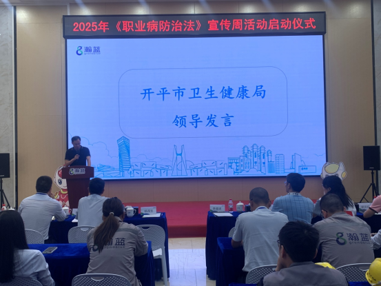 4月24日上午,瀚蓝(开平)固废处理有限公司(以下简称瀚蓝公司)《职业病防治法》宣传周启动仪式在瀚蓝公司一楼会议室举行。市卫生健康局、市红十字会、市疾控中心、市第二人民医院、瀚蓝公司的领导和相关股室同志以及瀚蓝职工代表共60多人出席启动仪式。