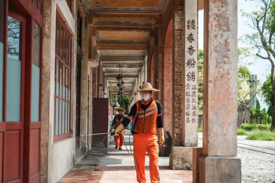 而开平市赤坎华侨古镇内的民宿,也积极落实“无蚊场所”创建要求,同步抓好疫情防控。赤坎旧埠旅游发展有限公司丽源旅店分公司相关负责人介绍,一方面,对员工开展疫情防控宣传教育,张贴防疫宣传海报,开展旅客与员工健康监测;另一方面,从源头开展蚊虫防控,组织工作人员对民宿全域进行翻盆倒罐式清理,彻底清除托盘、积水、垃圾杂物等。同时,疏通排水系统、排查空调凝水隐患,对民宿内及周边下水口安装防蚊装置或驱虫药包。此外,全面检修防蚊纱窗,公共区域搭配环保驱蚊剂与灭蚊灯,客房内备好电蚊香液,每天错峰开展常态化消杀,建立消杀台账,全力实现无蚊场所。