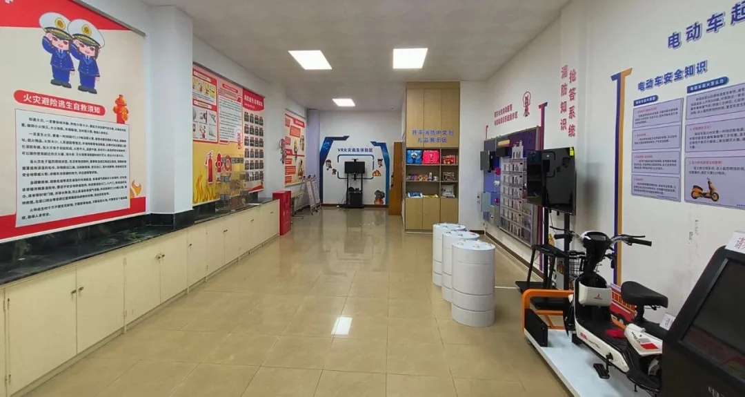 开平市消防救援大队消防教育科普体验室,是江门市基层消防大队中首家建立的消防教育科普体验室,面积约60平方米。该沉浸式智能科普平台,从“防”“灭”“救”三个维度,全面展示了消防形象、知识科普、技能体验、设备实操、应急救护五大展区,其中配置有电动车起火模拟实验台、消防知识抢答与学习、楼宇火灾报警联动系统、VR火灾现场模拟体验、应急绳结学习、消防器材展示等功能区。通过“场景+体验+互动”的多元化宣传模式,让群众零距离体验和学习消防知识。