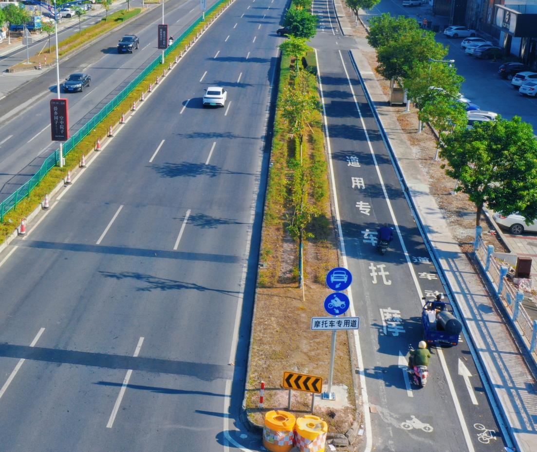 深研细谋,推动调研成果落地见效。江门市开平公路事务中心于2021年10月建成国道325线沙冈至冈中段(K108+000~K112+000)摩托车专用道,为江门市国道上第一条摩托车专用道;2022年9月结合前期成功经验继续推广建成国道325线冈中路口至中业新城段(K112+000~K114+400)摩托车专用道,切实改善了国道325线开平段穿城过镇路段的交通秩序。2023年就推进国道325线开平段摩托车专用道建设深入沿线村居开展调研,了解到随着摩托车和非机动车数量出行频次日益增长,群众对“增设非机动车道”“提高非机动车道的连续性”,提高摩托车、非机动车出行舒适度、安全性有着日益迫切的诉求。