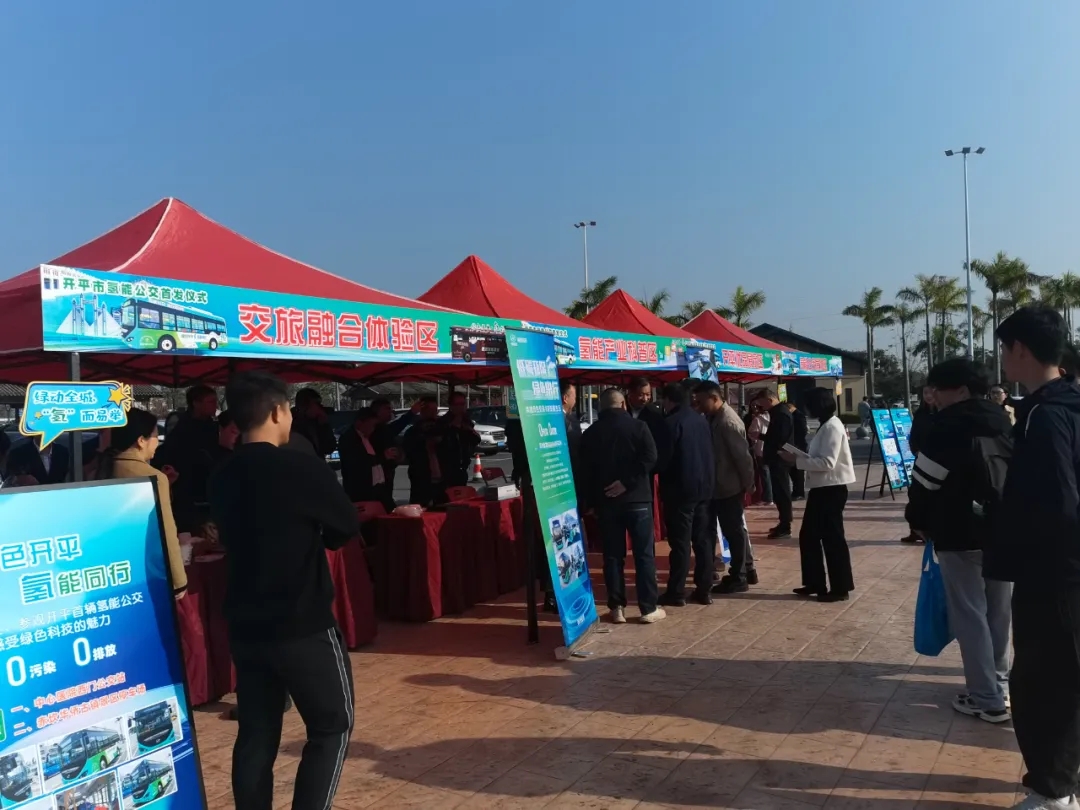 活动当天,还进行了氢能公交首发乘车体验环节,与会嘉宾和市民代表共同乘坐氢能公交,到赤坎华侨古镇,活动结合“畅游开平乐购侨乡”消费季活动,现场设置了氢能产业科普、氢能公交展示、开平优品展示、农文旅融合体验等环节,打造了一个可看、可感、可购的多元化的消费空间,展现了氢能应用场景带动地方特色经济发展的潜力。