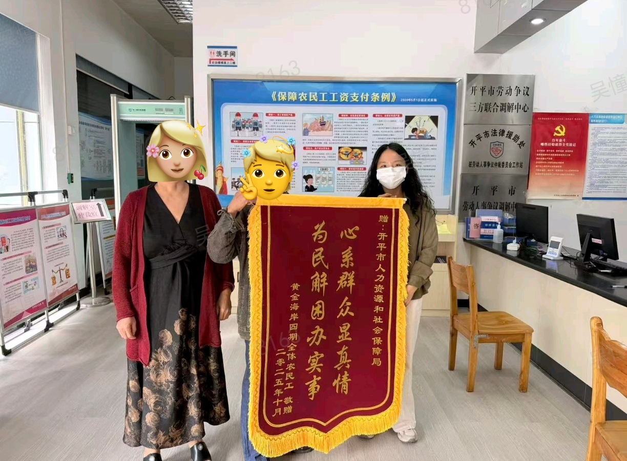 近日,某项目工人代表游先生将一面绣着“心系群众显真情 为民解困办实事”的锦旗送到开平市人社局,以此感谢工作人员帮助67名工人追回160万元拖欠劳动报酬。这温情致谢的一幕,正是开平市人社局扎实推进根治欠薪行动的生动缩影。此前,游先生等67人于2023年10月反映该项目欠薪问题,开平市人社局第一时间立案查处,向施工总承包单位下达限期整改指令书,在与属地政府协同发力下,67人的劳动报酬共计160万元已全部支付到位,切实保障了劳动者合法权益。
