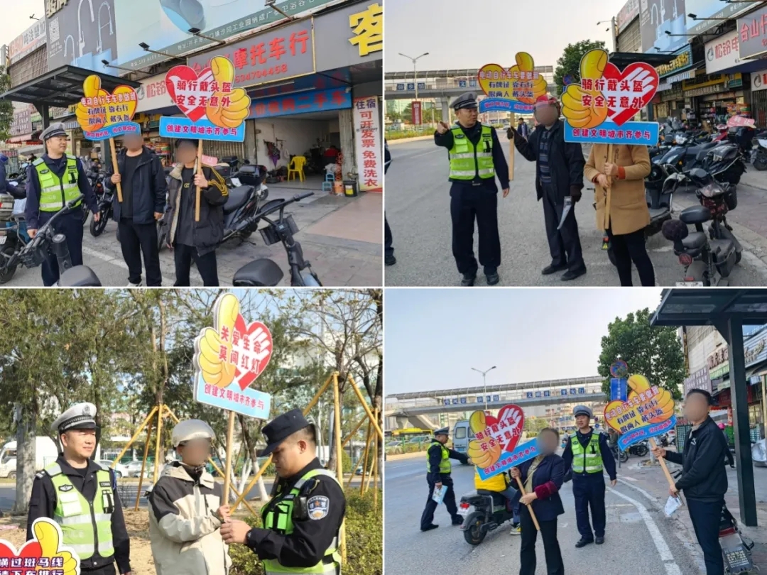 同时,民警通过在早晚高峰时段摆放案例展板、发放交通安全宣传单张的形式向电动自行车、摩托车驾乘人员、过往行人进行宣传,教育引导群众时刻牢记“安全”二字,摒弃交通陋习,养成“文明守法、安全出行”的良好习惯。