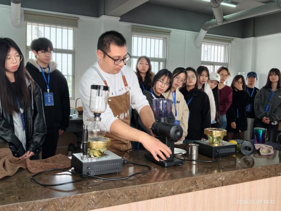 下午,学员们分组体验了意式咖啡制作与金箔画工艺设计两项技能课程,在动手实践中感受职业技能的魅力,拓宽了就业视野与兴趣方向。