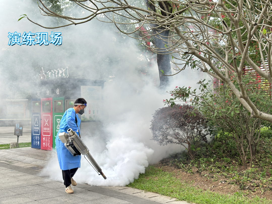 本次演练模拟本市出现确诊病例后,城管系统迅速响应,对重点区域开展蚊媒消杀、下水道药包投放、孳生地清理等应急处置。各小组分工明确、配合默契,圆满完成既定任务。