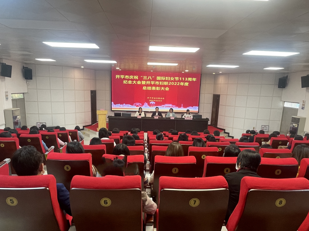 3月3日上午,开平市庆祝“三八”国际妇女节113周年纪念大会暨开平市妇联2022年度总结表彰大会在市委党校圆满举办。市委副书记、市委政法委书记关耀东出席会议并作讲话,市妇联十三届执委会委员、各镇(街道)妇联主席、市直及有关单位妇委会主任、各类先进集体和个人代表等共100多人参加了会议。