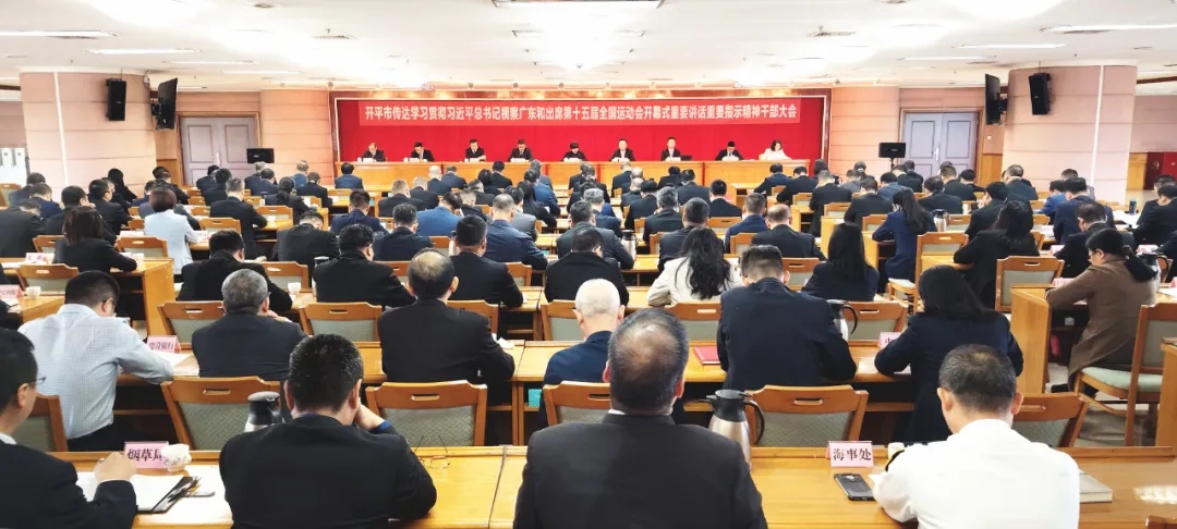 会议指出,在全党全国上下认真学习贯彻党的二十届四中全会精神,收官“十四五”、谋划“十五五”的重要时刻,习近平总书记亲临广东视察,出席十五运会开幕式并宣布运动会开幕,充分体现了总书记对广东工作的高度重视,对广东人民的关怀厚爱,对广东发展的殷切期望,为我们奋力开创开平现代化建设新局面指明了前进方向、提供了根本遵循。全市各级各部门要深刻认识习近平总书记视察广东和出席十五运会开幕式的重大意义,进一步增强学习贯彻的自觉性、主动性、坚定性;要深刻领悟总书记的重要讲话重要指示是对我们贯彻落实党的二十届四中全会精神、谋划推进“十五五”时期经济社会发展的科学指引,坚持高站位、宽视野、大格局科学谋划未来五年工作,认真做好我市“十五五”规划编制工作;要深刻领悟总书记的重要讲话、重要指示是我们在新起点上增创新优势、实现新突破的根本遵循,大力弘扬改革开放精神、侨乡精神,进一步全面深化改革,推进高水平对外开放;要深刻领悟总书记的重要讲话、重要指示是推进新阶段粤港澳大湾区建设的行动指南,抢抓机遇、找准定位,全方位融入和服务粤港澳大湾区建设;要深刻领悟总书记的重要讲话重要指示是赓续红色血脉、汲取奋进力量的鲜亮旗帜,讲好开平红色故事,从党的历史中汲取智慧和力量。要结合实际创造性抓落实、不折不扣抓落实,奋力推动中国式现代化的开平实践不断取得新突破,以实际行动坚定拥护“两个确立”、坚决做到“两个维护”。