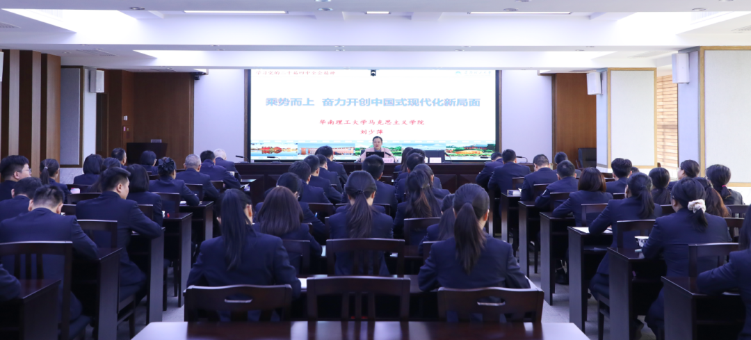 在开平市检察院,华南理工大学马克思主义学院党委书记刘少萍以《乘势而上奋力开创中国式现代化新局面》为主题开展宣讲,全面解读党的二十届四中全会的精神内涵,引导与会人员深刻理解全会提出的新思想、新论断和新要求。