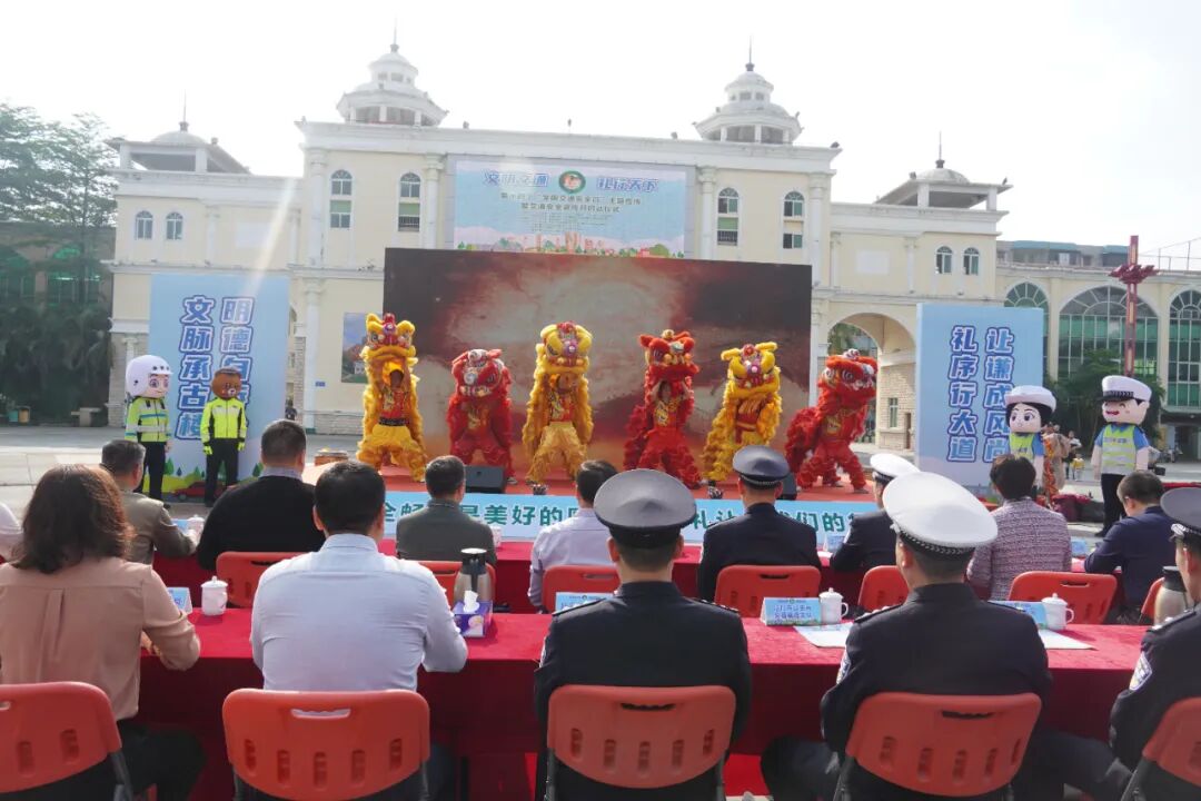 活动在气势磅礴的非遗狮鼓表演中拉开序幕,铿锵鼓点瞬间点燃全场。随后,融合了开平独特侨乡风情与碉楼文化元素的歌舞节目精彩上演,以艺术形式生动诠释“文明交通、礼让出行”的深刻内涵,赢得观众阵阵掌声。