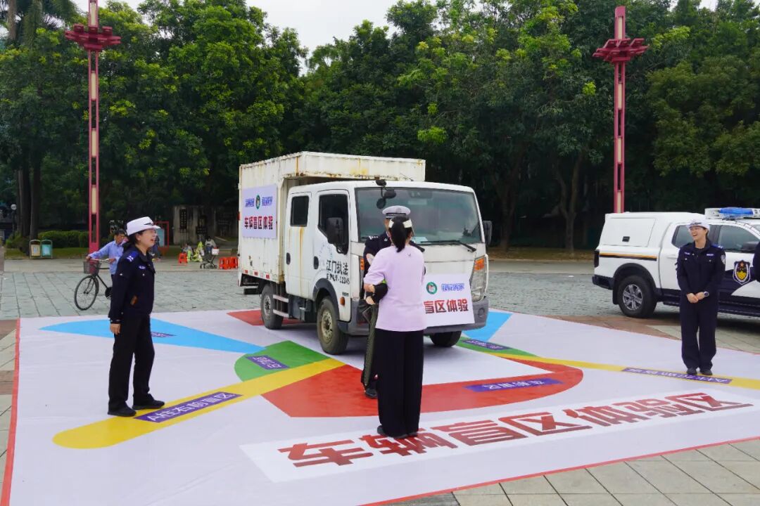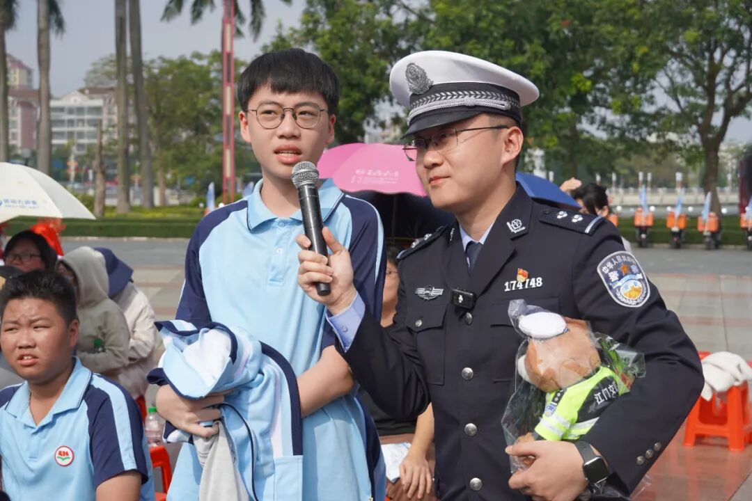 交警宣讲员随后登台,突出“礼”在交通出行中的核心价值,围绕“一老一小”、“货车盲区”、“文明骑行”、“拒绝酒驾”等重点内容,以案说法,生动普法。现场气氛热烈,观众踊跃互动,并与线上“江门交警”抖音直播形成联动,扩大了宣传影响。