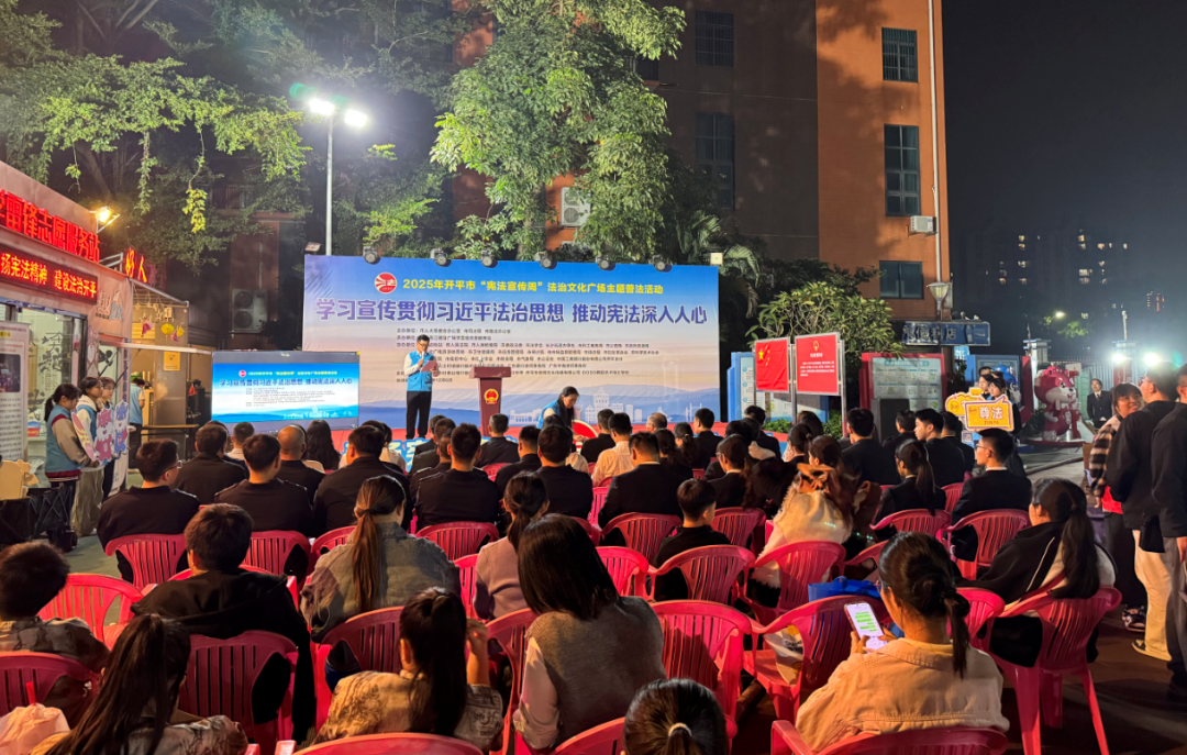 为大力弘扬宪法精神、维护宪法权威,进一步引导群众树立法治观念,增强法律意识、提升法治素养,12月6日晚上,开平市2025年“宪法宣传周”法治文化广场主题普法活动在苍江法治文化广场举行。