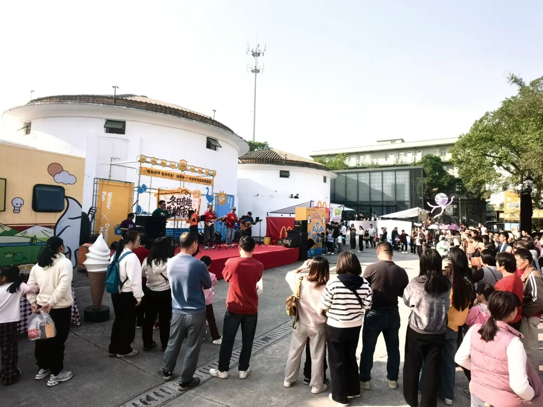 游客们在这场活动中尽情享受着惬意的周末休闲时光。市民小锋周末与父母到天下粮仓游玩、看书,看完书后也被吸引过来,“这里有很多我喜欢的小吃。”小锋说道。市民陈先生表示活动现场氛围浓厚,“小朋友有玩的地方,大人也有逛吃的地方。马冈鹅、凉粉这些小吃都很好吃。”